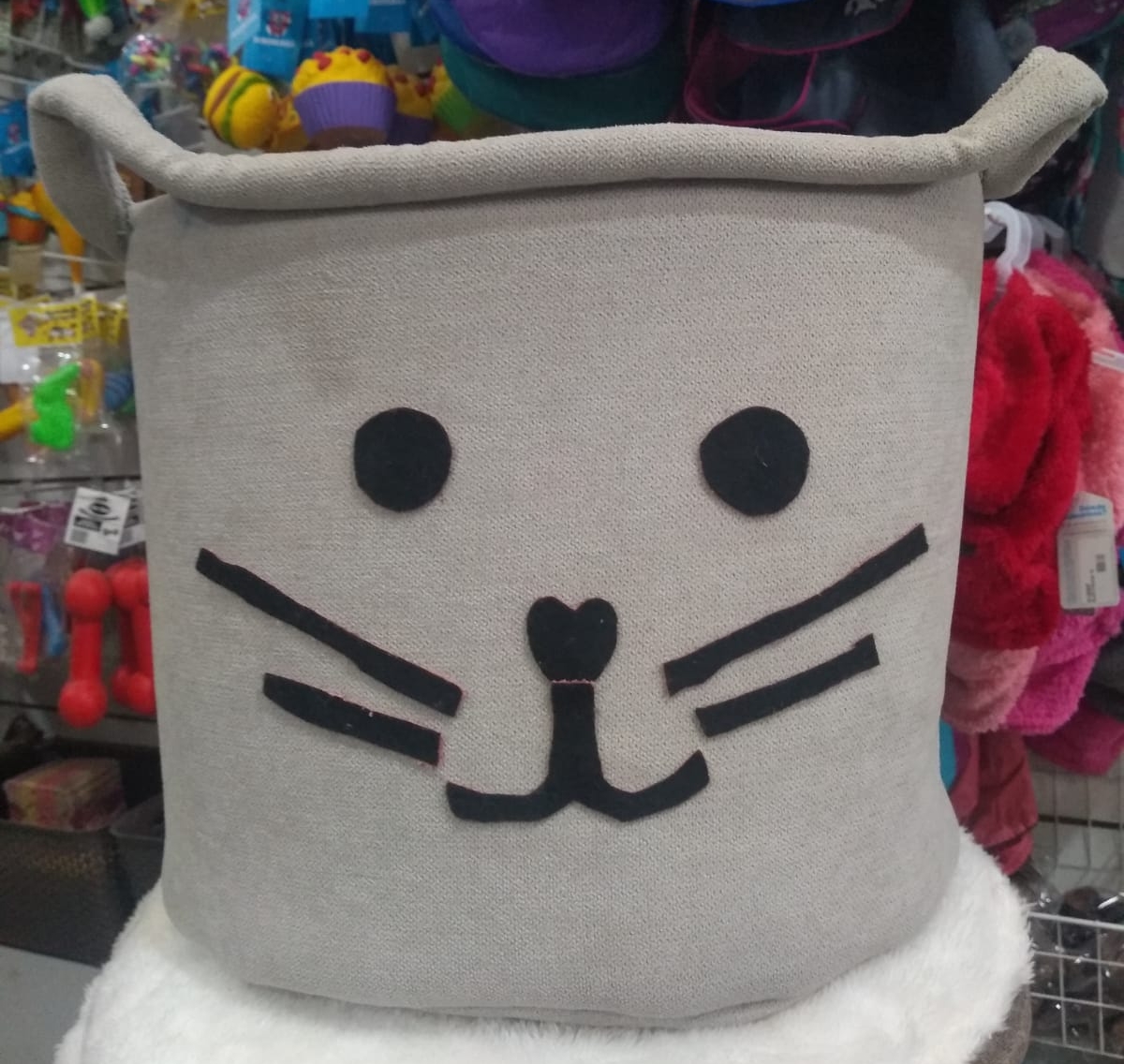 CANASTO ORGANIZADOR PARA GUARDAR JUGUETES Y CUALQUIER ACCESORIO DE TU MASCOTA EN PANA ANTIMANCHAS.