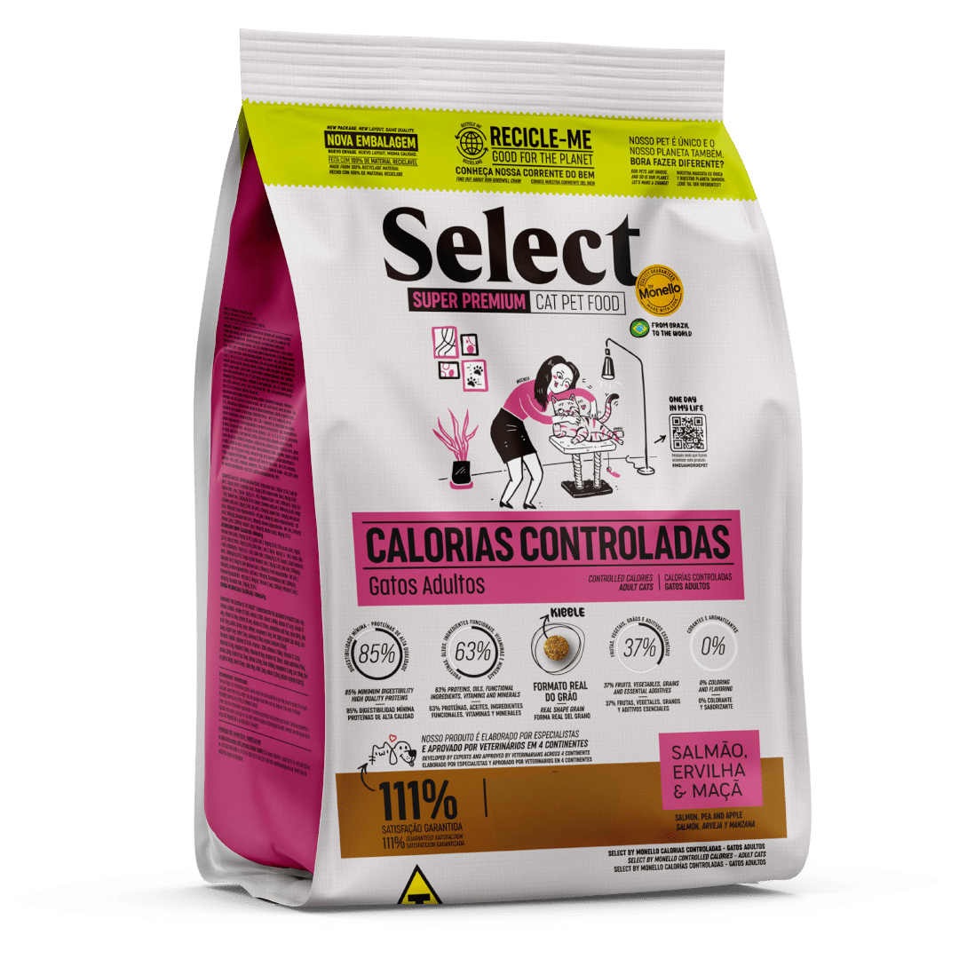 Ingredientes seleccionados fuentes de proteínas, aceites, ingredientes funcionales, vitaminas y minerales, mín. 63% (harina de vísceras de aves – mín. 21%, harina de salmón – mín. 2%, harina de carne y huesos de pavo – mín. 1%, aceite de aves, aceite de salmón – mín. 0,5%, hidrolizado de hígado de aves, mezcla de huevos deshidratados – mín. 0,5%, salvado de gluten de maíz, salvado de soya, biomasa de microalgas Schizochytrium sp. – mín. 0,1%, levadura de cerveza inactiva deshidratada, mezcla prebiótica – compuesto de: pared celular de levadura, galacto-oligosacáridos, fructo-oligosacáridos y levadura de caña de azúcar seca, hexametafosfato de sodio, L-carnitina, extracto de Yucca, metionina, taurina, vitaminas A, D3, E, C, K3, B1, B2, B6, B12, pantotenato de calcio, ácido fólico, ácido nicotínico, biotina, cloruro de colina, minerales cloruro de sodio, cloruro de potasio, sulfato de manganeso, sulfato de zinc, glicinato de zinc, sulfato de hierro, sulfato de cobre, yodato de calcio, selenito de sodio, selenio metionina). Frutas, vegetales, granos y aditivos esenciales, mín. 37% (arroz quebrado, grano de maíz, salvado de trigo, mezcla concentrada de frutas y vegetales deshidratados – compuesta por: harina de papa dulce – mín. 0,35%, manzanas – mín. 0,03%, plátanos, arándanos, zanahorias – mín. 0,03% y harina de arvejas – mín. 0,05%, pulpa de remolacha deshidratada – mín. 1%, ácido fosfórico y aditivos antioxidantes BHA y BHT).