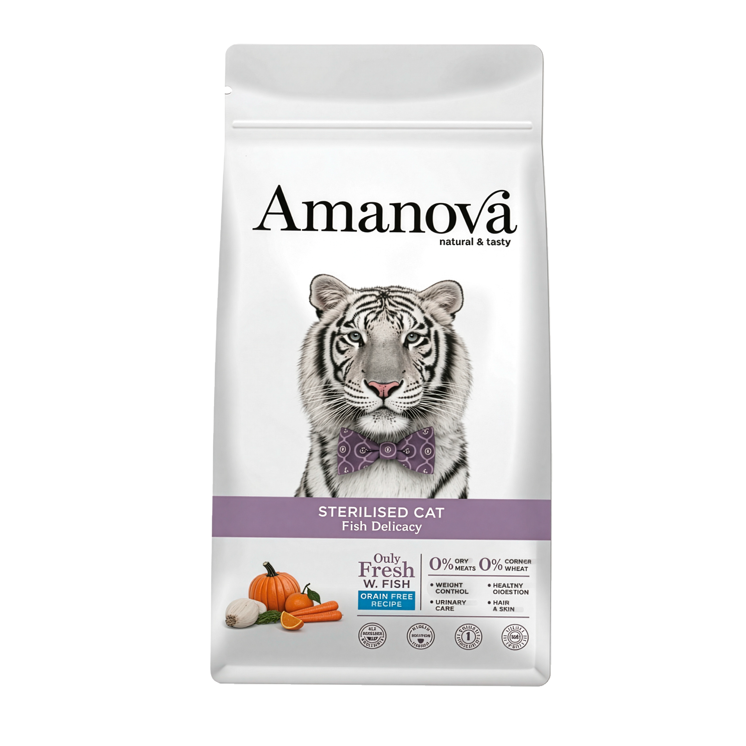 Alimento monoproteico e hipoalergénico para gatos esterilizados (+12 meses). Preparado con Pescado Blanco Fresco.