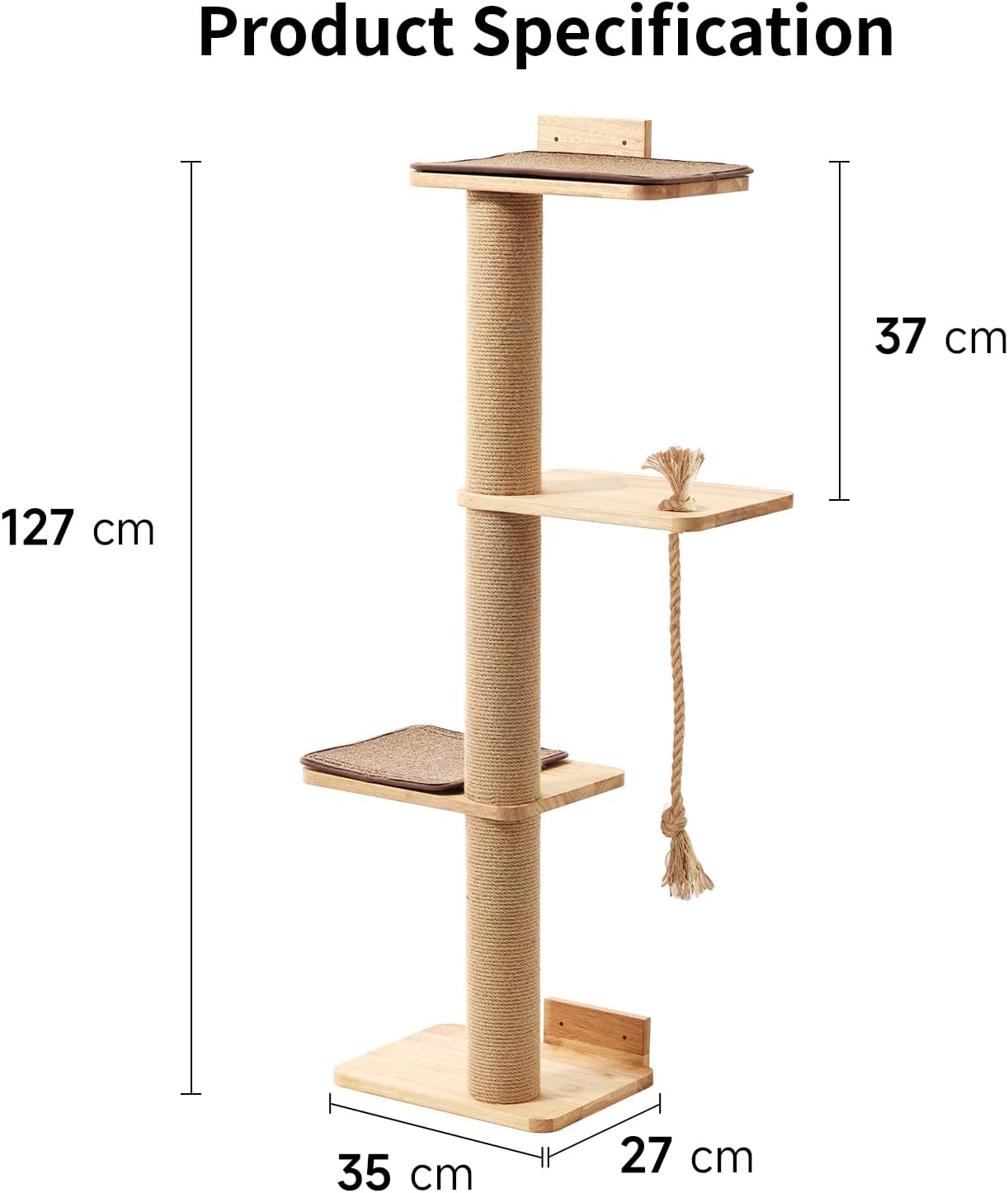 - Calidad y seguridad garantizadas. Fabricado en madera de goma sólida, este perchero para gatos está diseñado para soportar incluso los juegos más intensos. A diferencia de modelos más baratos, puedes estar tranquilo sabiendo que tu gato está seguro. Cada pieza es única gracias a la madera natural utilizada.