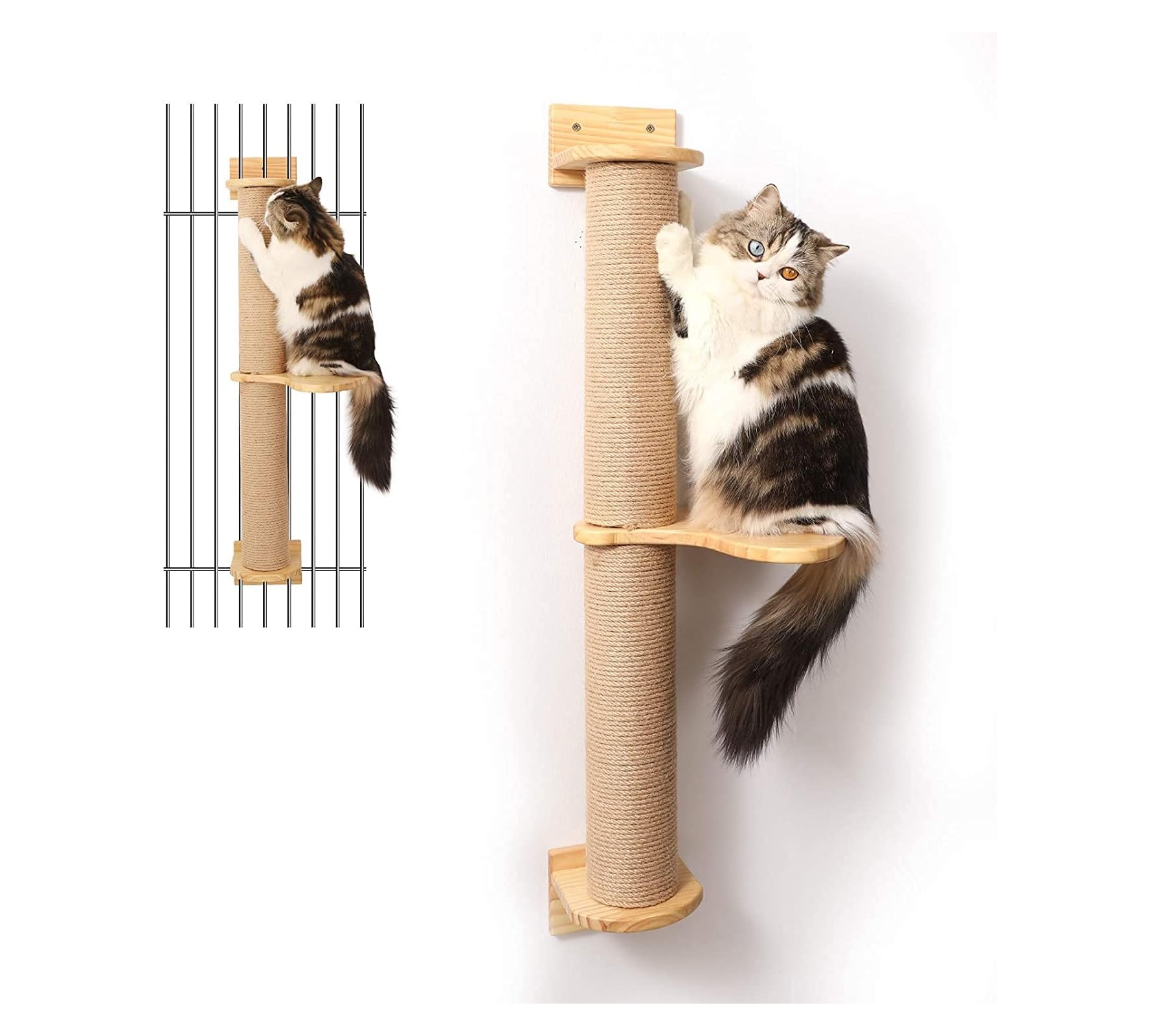 - Resistente, seguro y ecológico: Fabricado con pino natural y yute, materiales duraderos y respetuosos con el medio ambiente. Su estructura robusta proporciona estabilidad, asegurando que tu gato pueda disfrutarlo sin riesgos. Además, se instala fácilmente en paredes o jaulas con los tornillos adecuados.