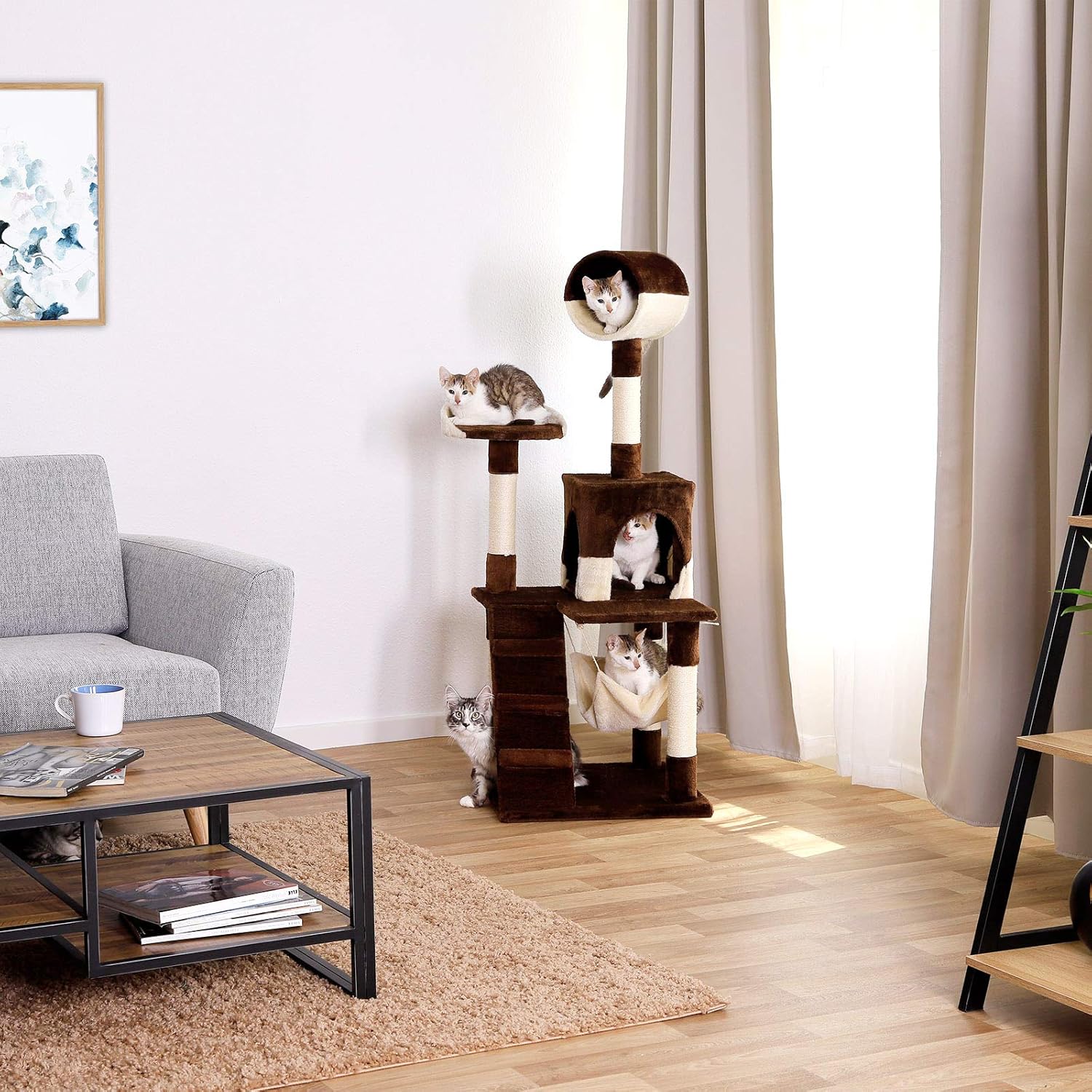 Árbol rascador lionto 133 cm para gatos, beige y marrón