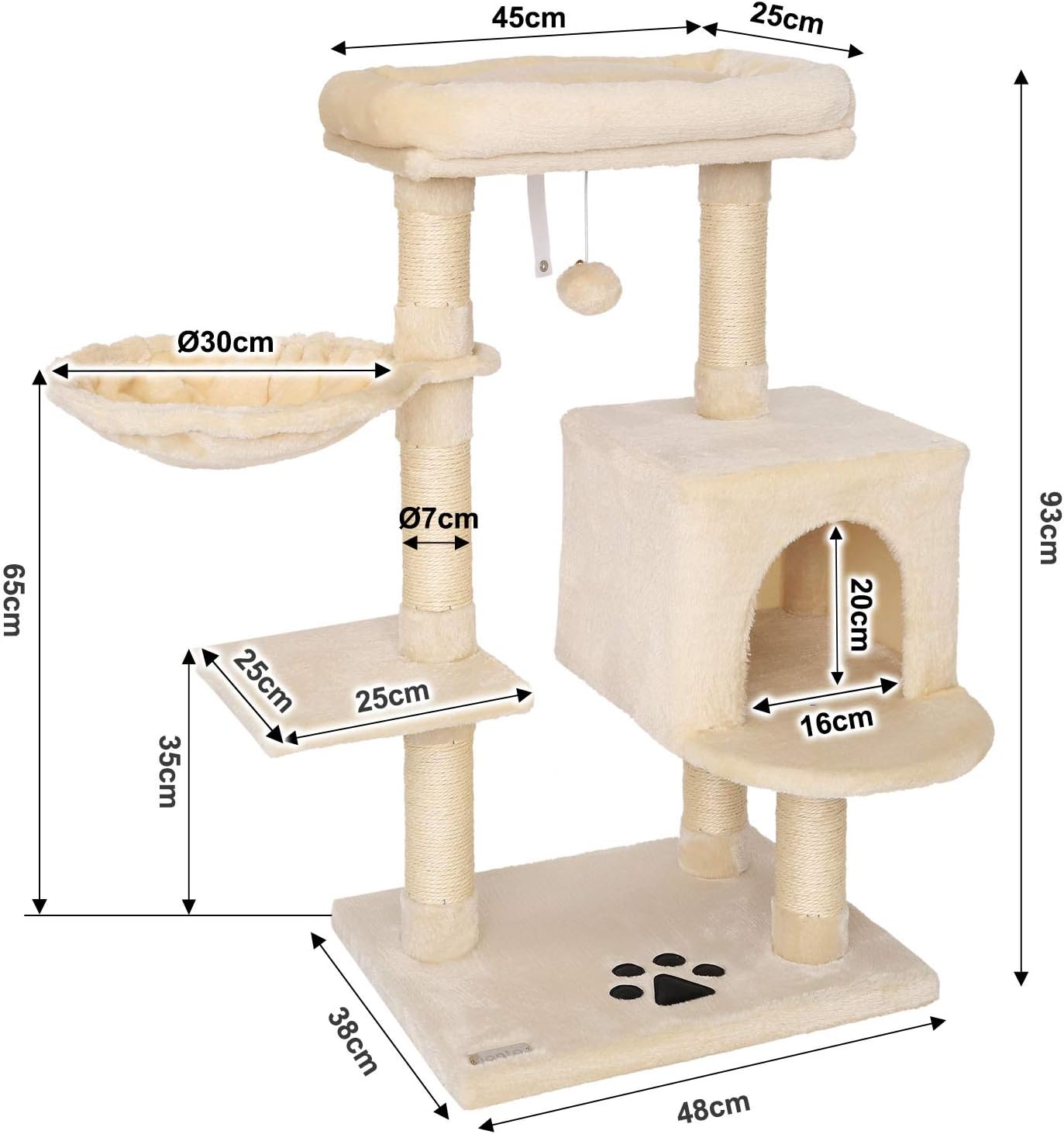 Árbol rascador lionto para gatos beige, altura 93 cm
