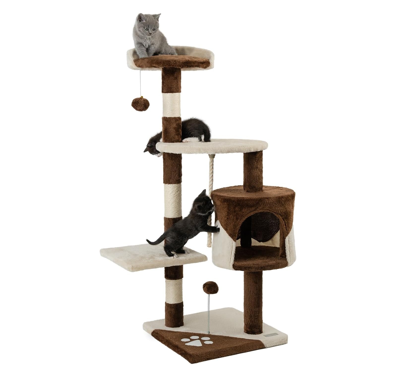 árbol rascador lionto para gatos: Proporciona a tu gato el espacio perfecto para jugar, descansar y cuidar sus garras con el árbol rascador lionto para gatos. Este accesorio, fabricado con felpa suave y equipado con múltiples actividades, es ideal para satisfacer las necesidades de cualquier felino. Con una cueva acogedora, dos bolas de peluche, una cuerda de sisal y plataformas para observar, este árbol combina diversión y confort en un diseño compacto y funcional.