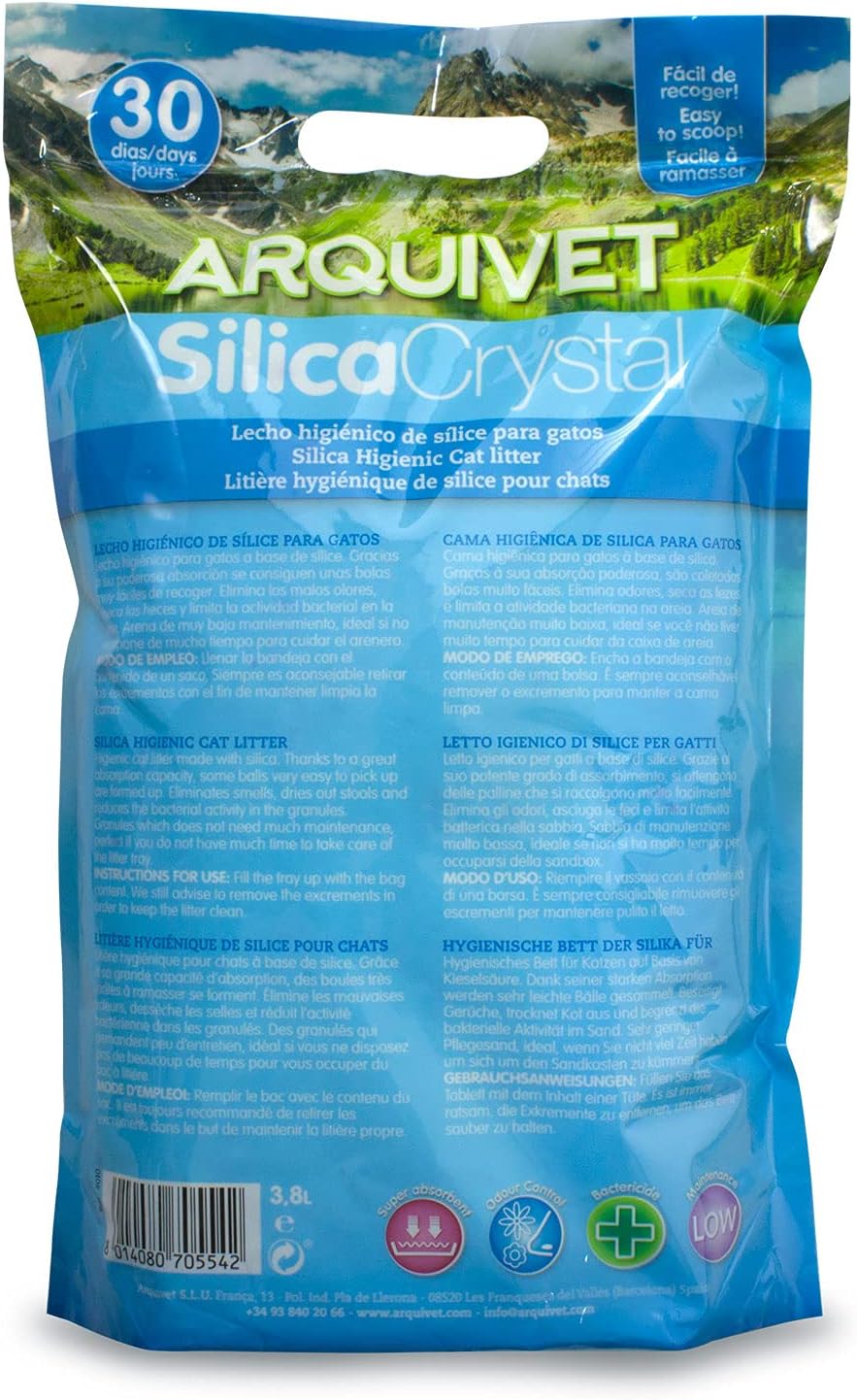Para utilizarla, simplemente llena la bandeja de tu gato con el contenido de un saco y asegúrate de retirar periódicamente los excrementos para mantenerla siempre limpia. Este producto es adecuado para gatos de todas las etapas de vida y viene en un práctico formato de 8 unidades, cada una con 3,8 litros. La arena para gato Arquivet silica garantiza comodidad y bienestar tanto para tu mascota como para ti.