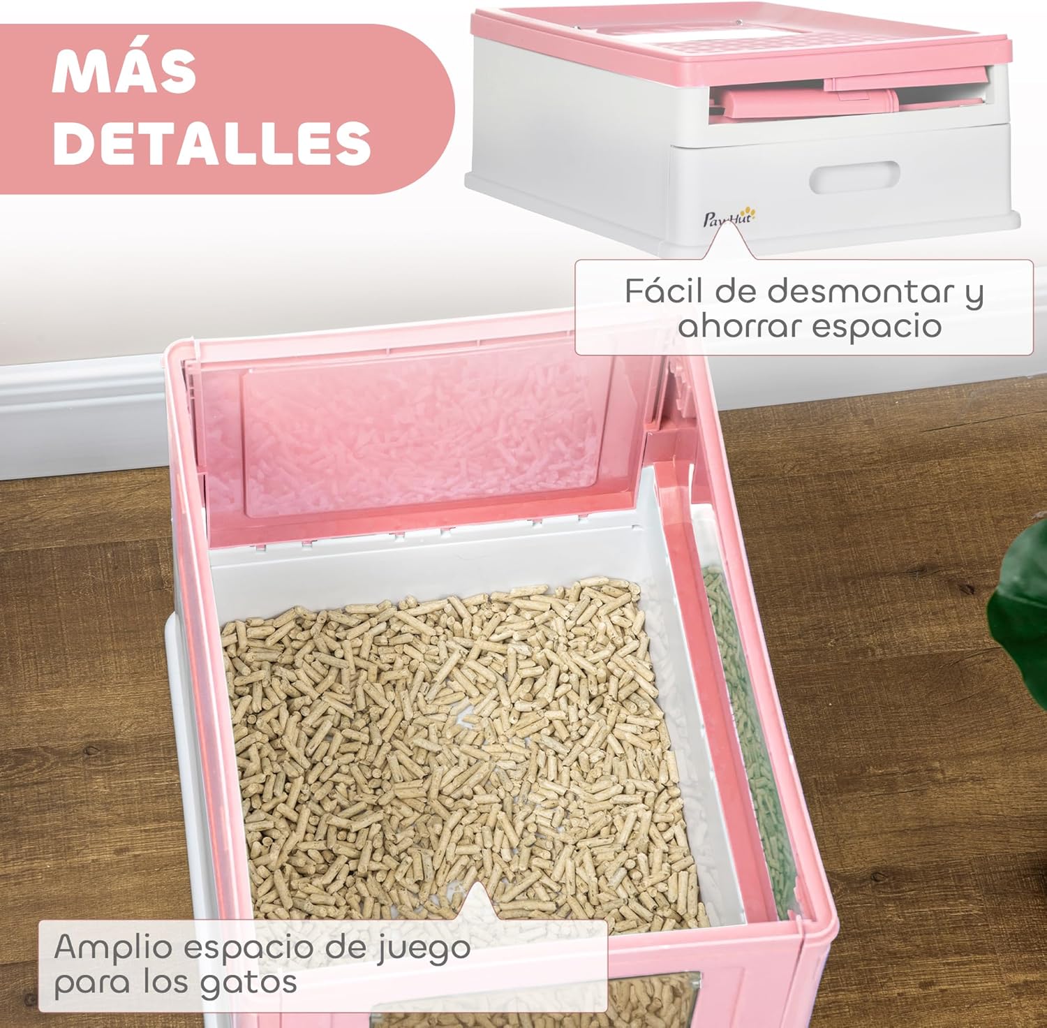 Diseñado pensando en la practicidad, este arenero incluye una bandeja extraíble y una pala que facilitan la limpieza diaria. Sus bordes altos están diseñados para evitar que la arena se esparza fuera del contenedor, manteniendo el área circundante ordenada y sin residuos.