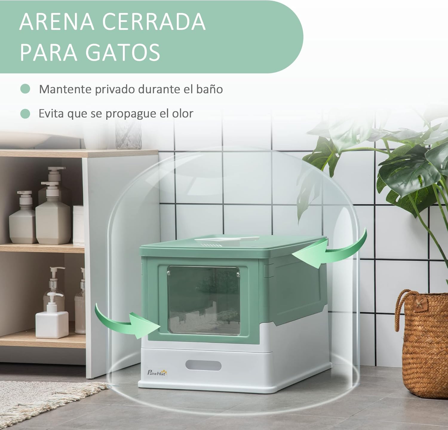 Arenero cubierto PawHut para gatos con entrada frontal y salida superior