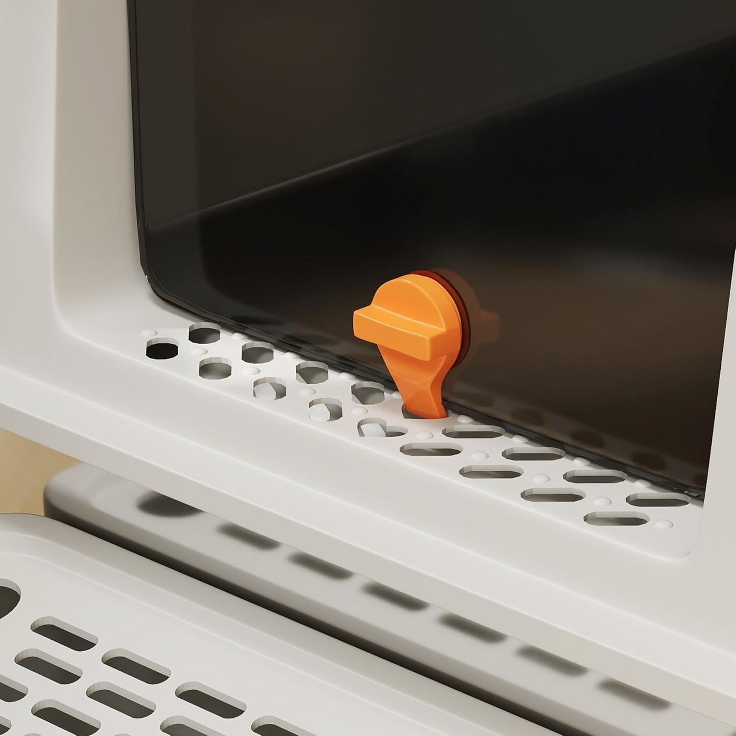 Pensado en la comodidad de tu gato, su diseño semiabierto con salida superior proporciona privacidad mientras optimiza la ventilación. Esto evita la acumulación de humedad y mantiene un ambiente fresco y cómodo para tu mascota. Además, la puerta frontal cuenta con un botón ajustable que solo permite la entrada, promoviendo el uso de la salida superior y reduciendo el desorden ocasionado por el rastreo de arena.