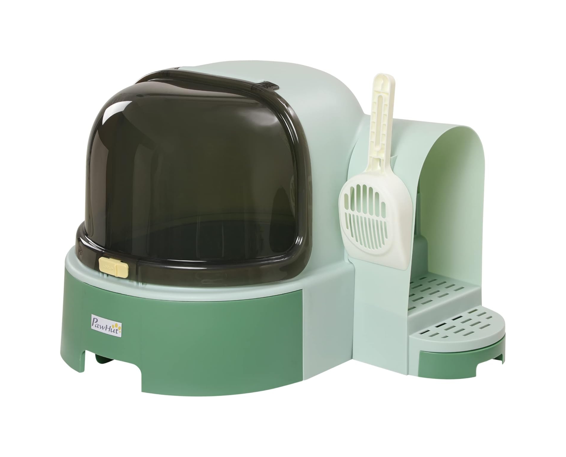 El diseño en forma de cápsula espacial, con un atractivo color verde, no solo es funcional, sino que también aporta un toque moderno a cualquier rincón de tu hogar. Este arenero cerrado ofrece privacidad total para que tu gato se sienta cómodo al hacer sus necesidades, mientras minimiza los malos olores gracias a su estructura totalmente sellada.