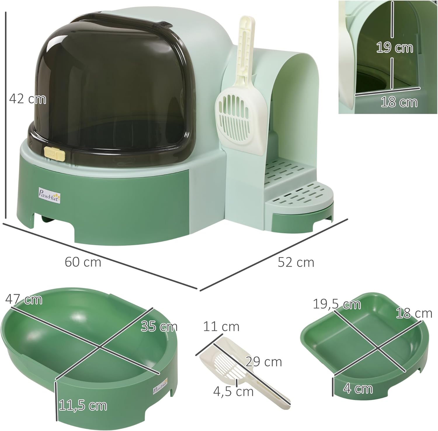 arenero para gatos pawhut: Este arenero para gatos pawhut combina funcionalidad, diseño innovador y comodidad para tu mascota. Su bandeja inferior extraíble y tapa frontal abatible facilitan una limpieza rápida y sin complicaciones, garantizando un entorno higiénico. Además, cuenta con una espaciosa puerta lateral y escalones con bandeja de extracción para evitar que la arena se disperse, ofreciendo un acceso cómodo y limpio para tu gato.