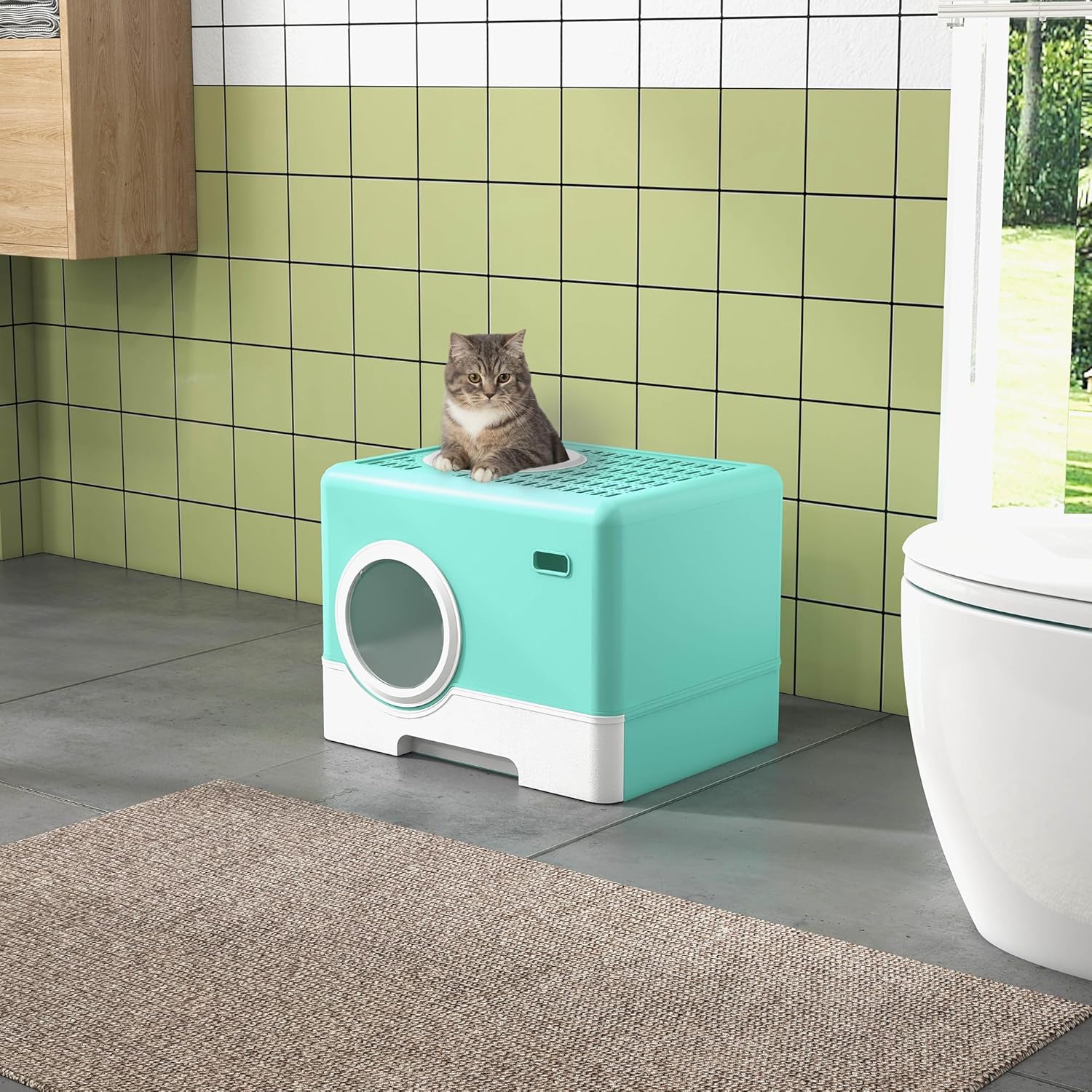 arenero para gatos pawhut: El arenero para gatos pawhut es la solución perfecta para garantizar comodidad, higiene y privacidad a tu amigo peludo. Su diseño inteligente incluye una entrada frontal y una salida superior, facilitando el acceso y reduciendo el derrame de arena gracias a los agujeros estratégicamente colocados en la parte superior. ¡Mantén tu suelo limpio mientras tu gato disfruta de su espacio!