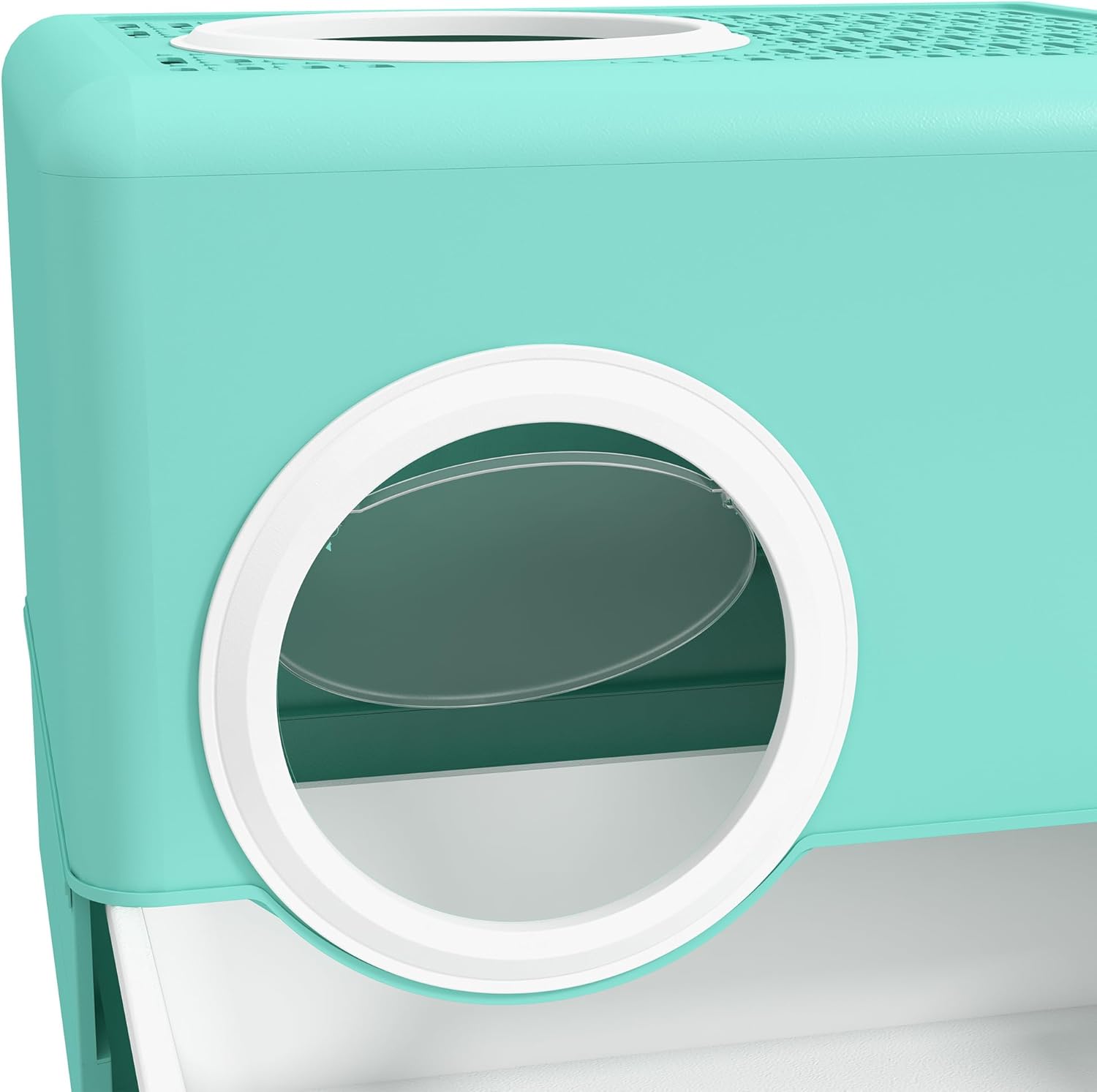 Además, su diseño cubierto de color verde no solo asegura mayor privacidad y seguridad para tu gato, sino que también se integra a la perfección con la decoración de tu hogar. Es un espacio amplio y cómodo, ideal para gatos de hasta 4 kg. Sus medidas totales son 52x41x38,5 cm (largo x ancho x alto) y requiere un montaje sencillo.