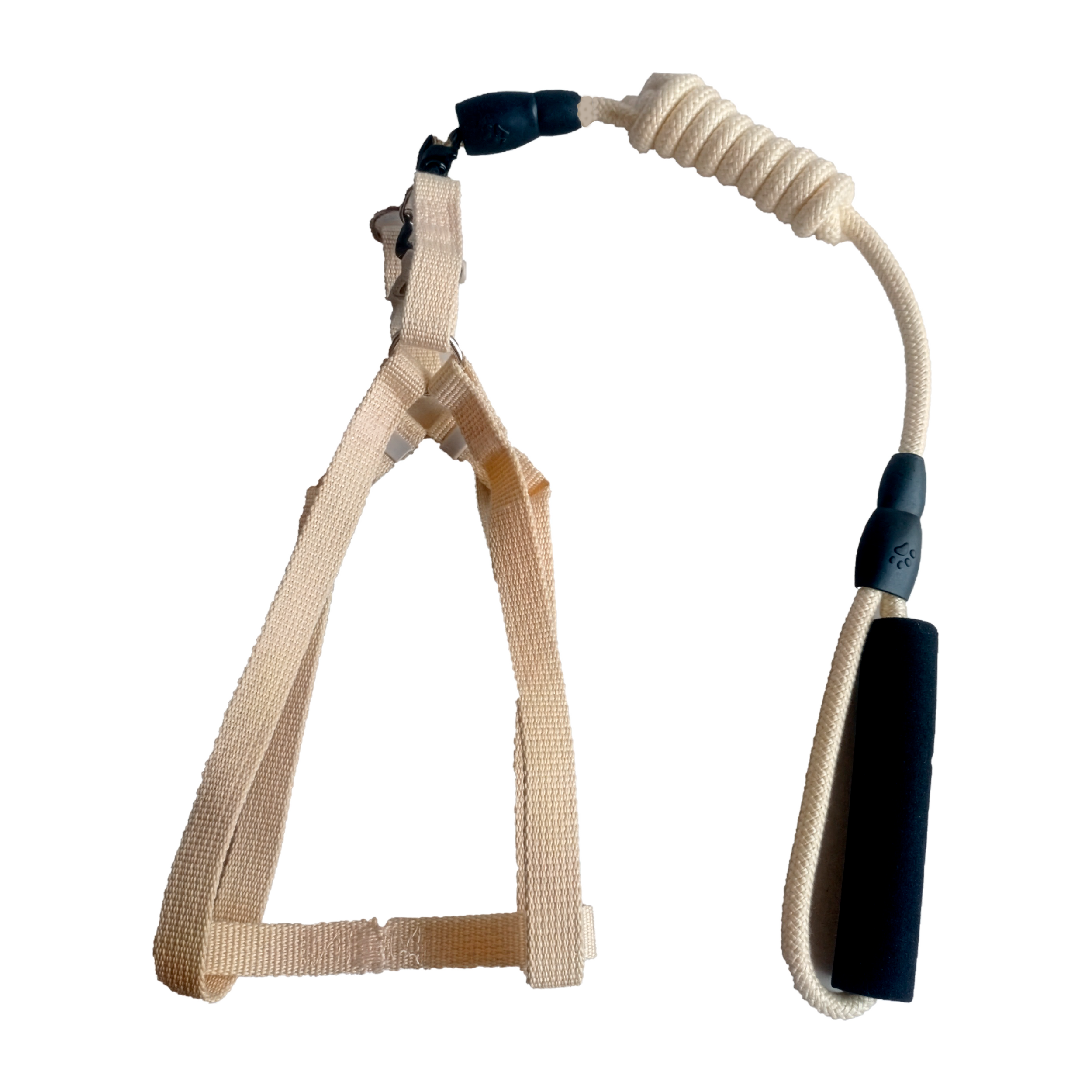 Arnés sencillo con correa, diseñado para paseos seguros y cómodos.
