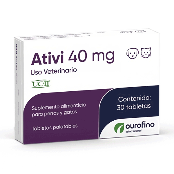 Administrar un comprimido de Ativi 40mg al día, no importa el peso del animal. Por tratarse de una tableta palatable, se puede administrarla directamente al animal, así que no hay necesidad de mezclar con otros alimentos. No hay un periodo de uso mínimo o máximo, así que queda a criterio del médico veterinario definir el tiempo de uso del producto. Sin embargo, estudios indican que los beneficios de la suplementación de los componentes de este producto se observan con el uso en largo plazo, así que se sugiere el uso por un mínimo de 60 días.