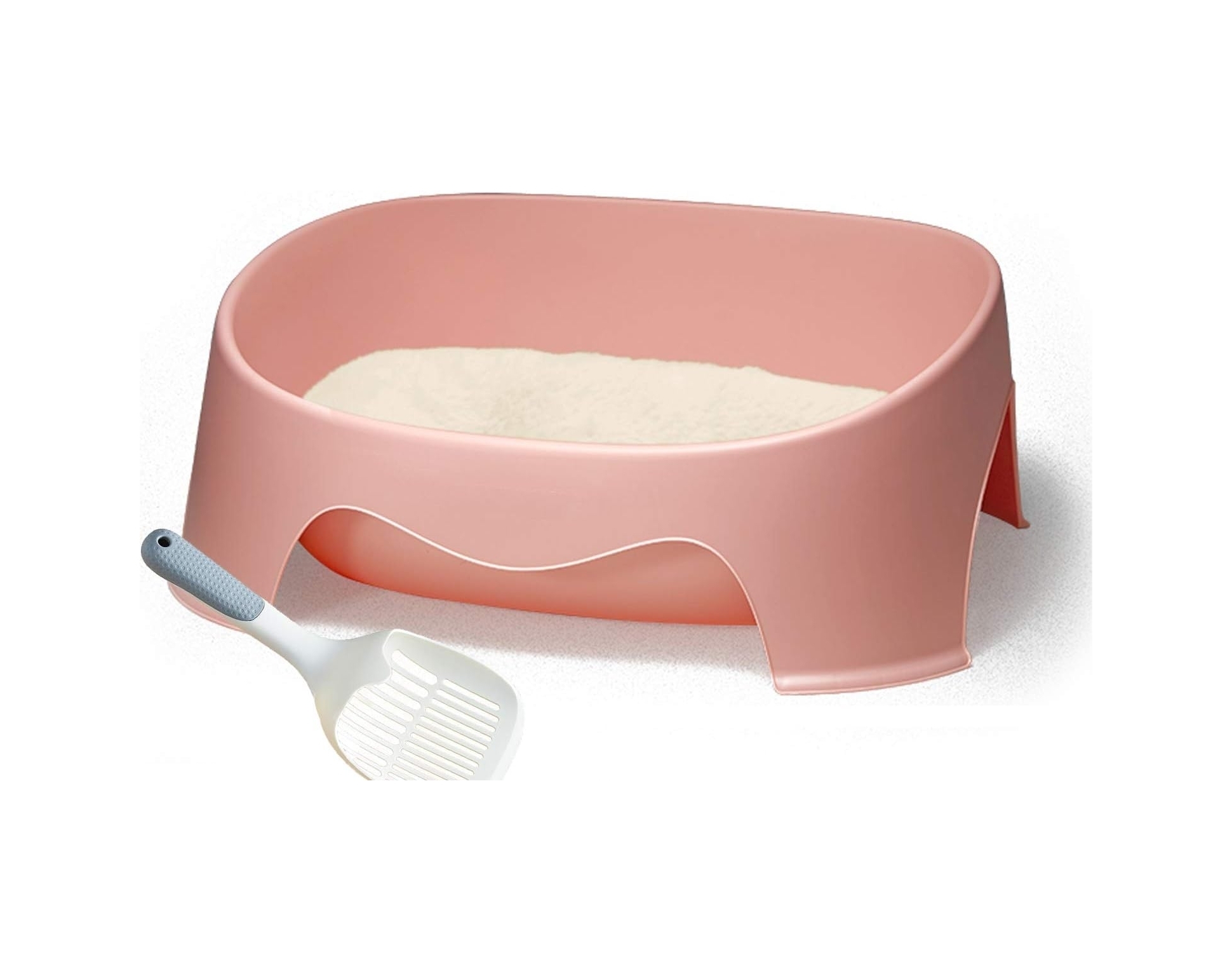 Con un diseño rectangular de esquinas ovaladas y colores vibrantes (gris, durazno, marrón y azul cian), esta bandeja se adapta perfectamente a cualquier rincón de tu hogar. Incluye un borde desmontable que no solo facilita la limpieza, sino que también ayuda a mantener el área más ordenada. Además, cuenta con una pala para simplificar el mantenimiento diario.
