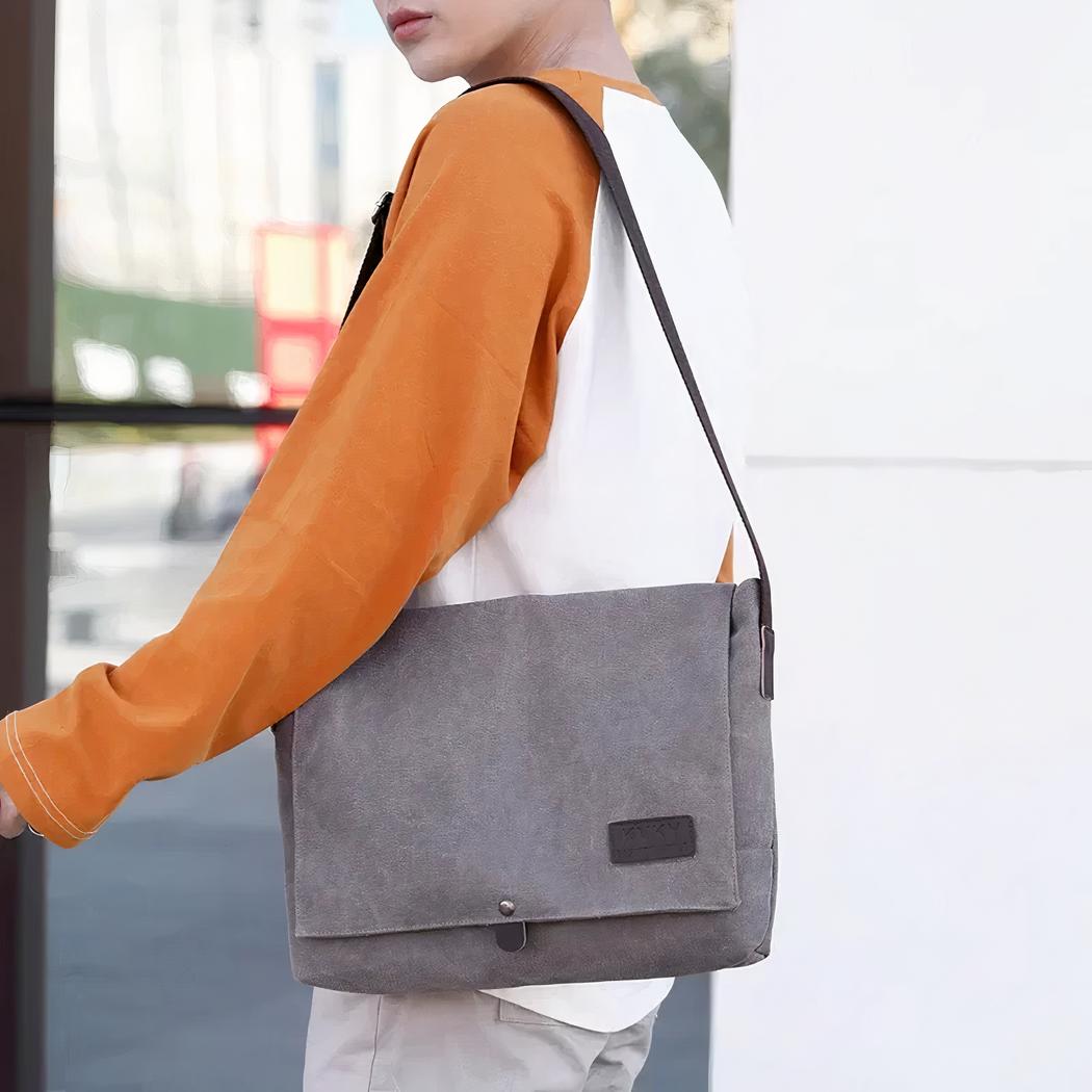 El diseño desenfadado de esta bandolera de lona para hombre se caracteriza por una silueta versátil que se adapta a todas las situaciones cotidianas. Este bolso no es un simple accesorio, sino un auténtico compañero urbano diseñado para satisfacer las variadas exigencias de la vida moderna.