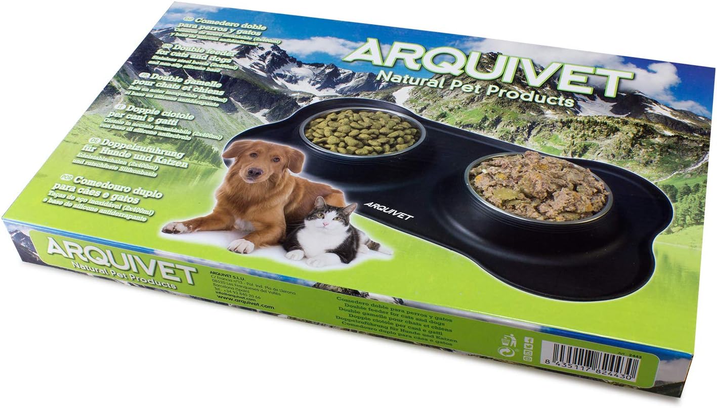 Con medidas globales de 46 x 27 cm y cuencos de 14 cm de diámetro por 4 cm de altura, este bebedero y comedero para gatos es adecuado para todas las etapas de la vida. Fabricado con materiales no tóxicos, asegura la seguridad y bienestar de tus mascotas mientras disfrutan de sus comidas.