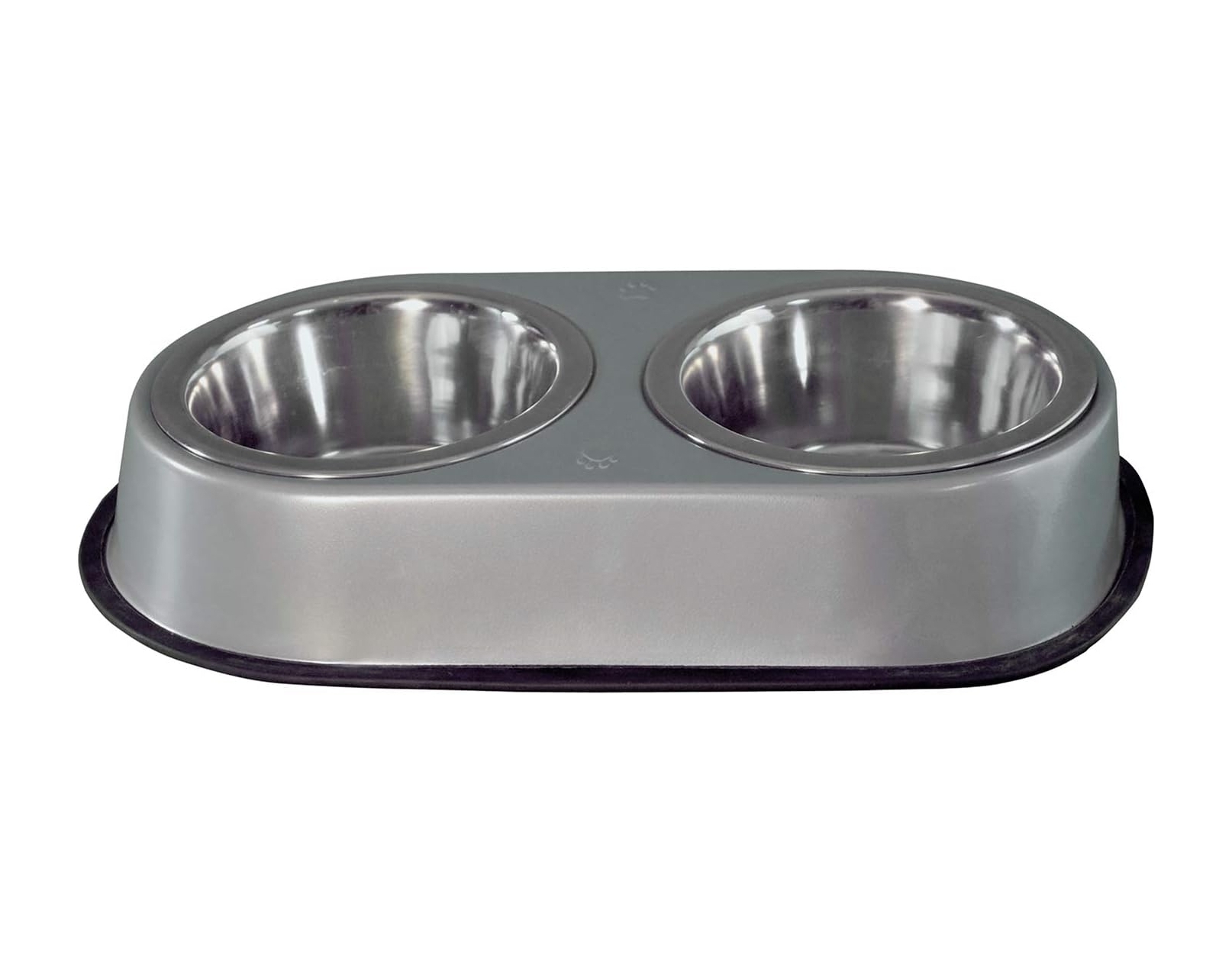 bebedero y comedero para gatos: Descubre el práctico bebedero y comedero para gatos diseñado para ofrecer comodidad y funcionalidad a tu mascota. Este modelo doble de acero inoxidable cuenta con una base antideslizante que garantiza estabilidad mientras tu gato come o bebe, evitando derrames y desorden en el área de alimentación.