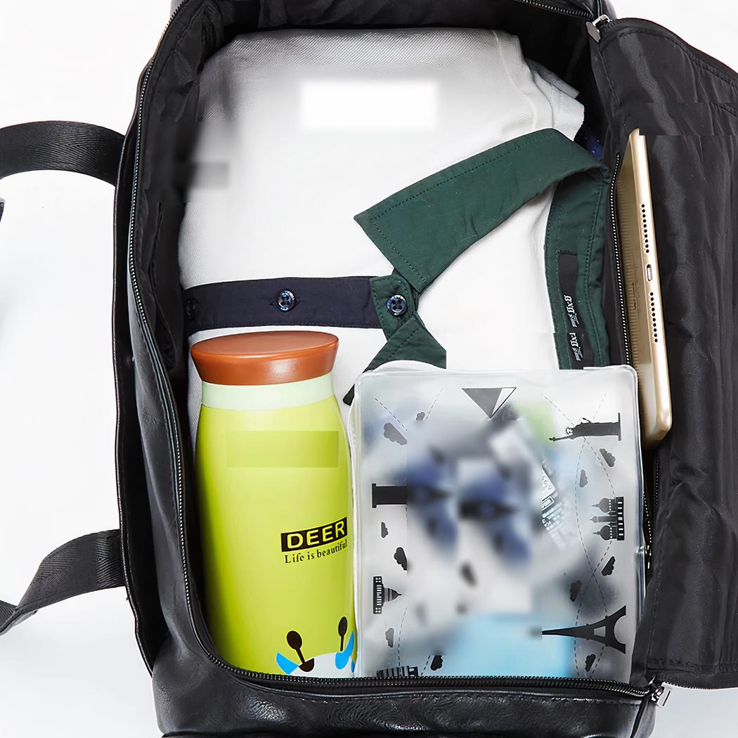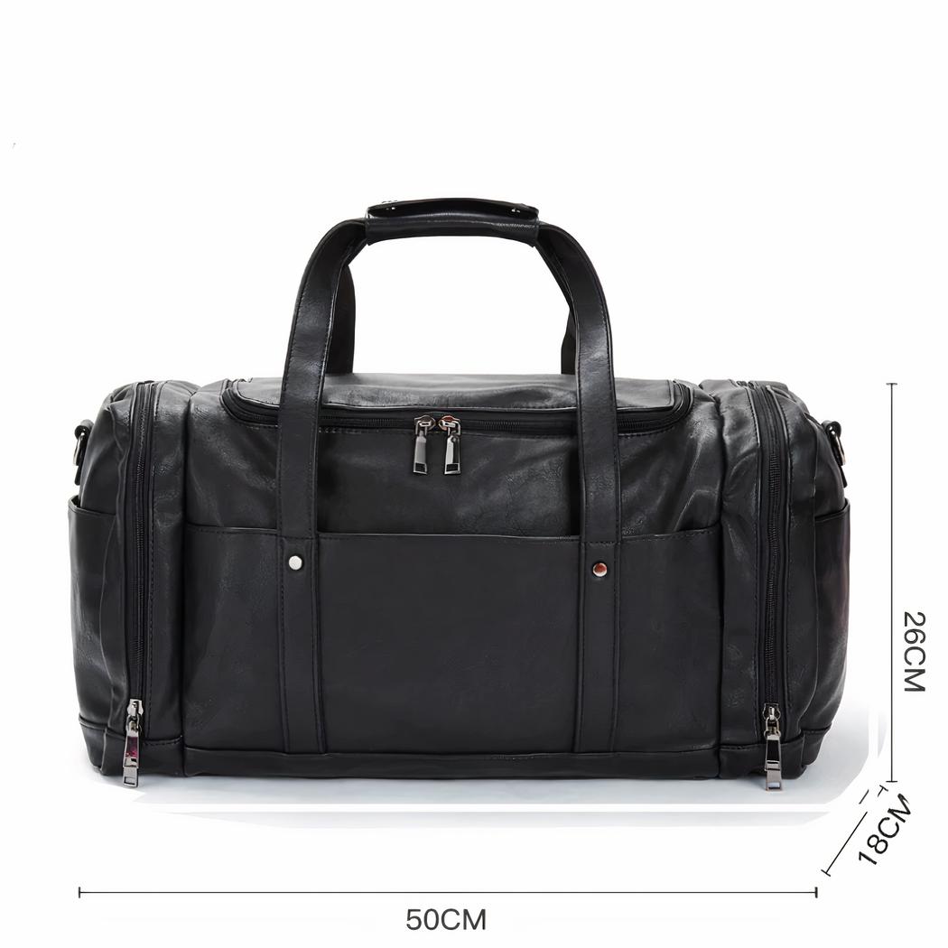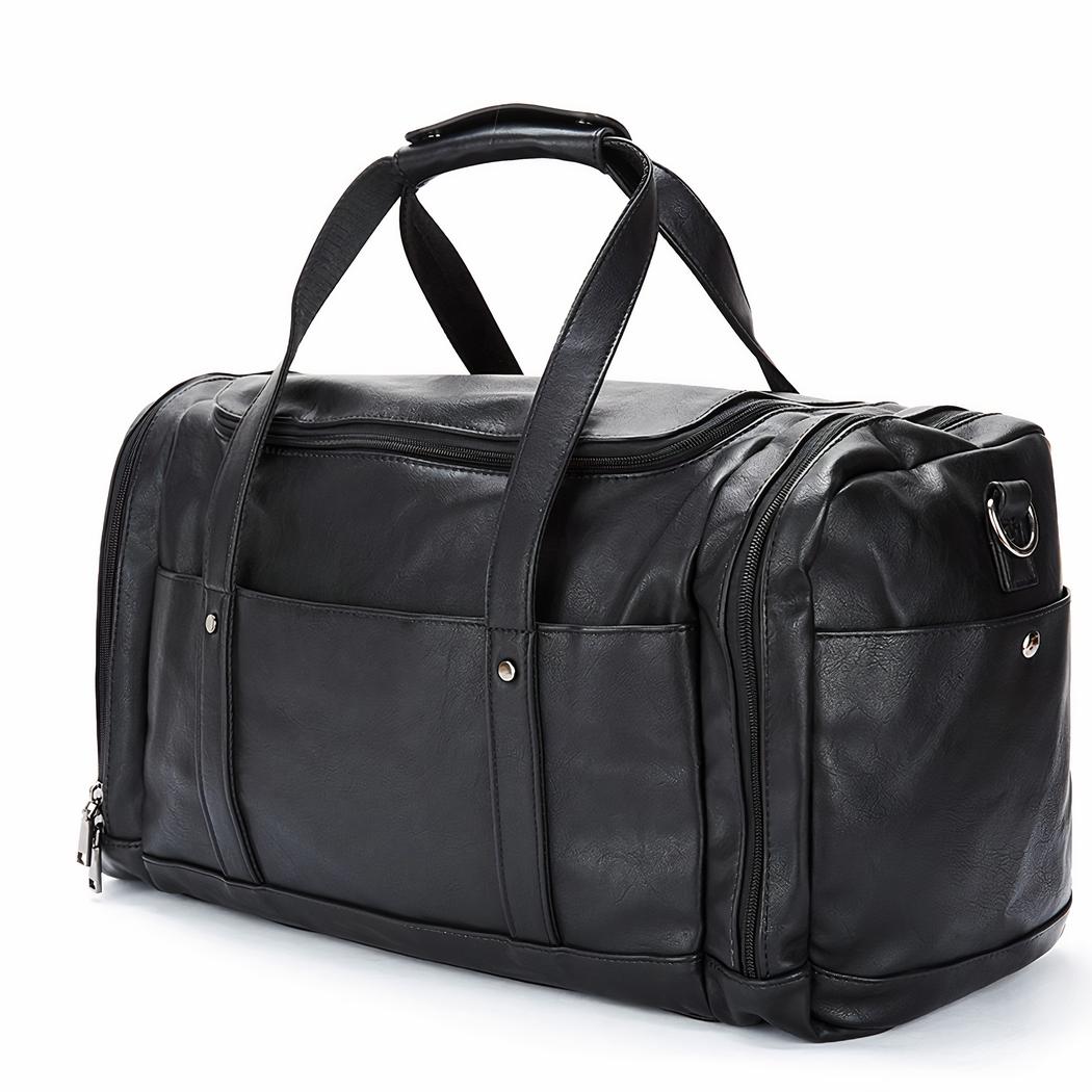 ¿Busca una bolsa de viaje grande y espaciosa que sea a la vez elegante y práctica? No busque más, esta gran bolsa de viaje multibolsillos en piel vegana negra. Perfecta para el hombre moderno en movimiento, esta bolsa de viaje negra es a la vez elegante y funcional.