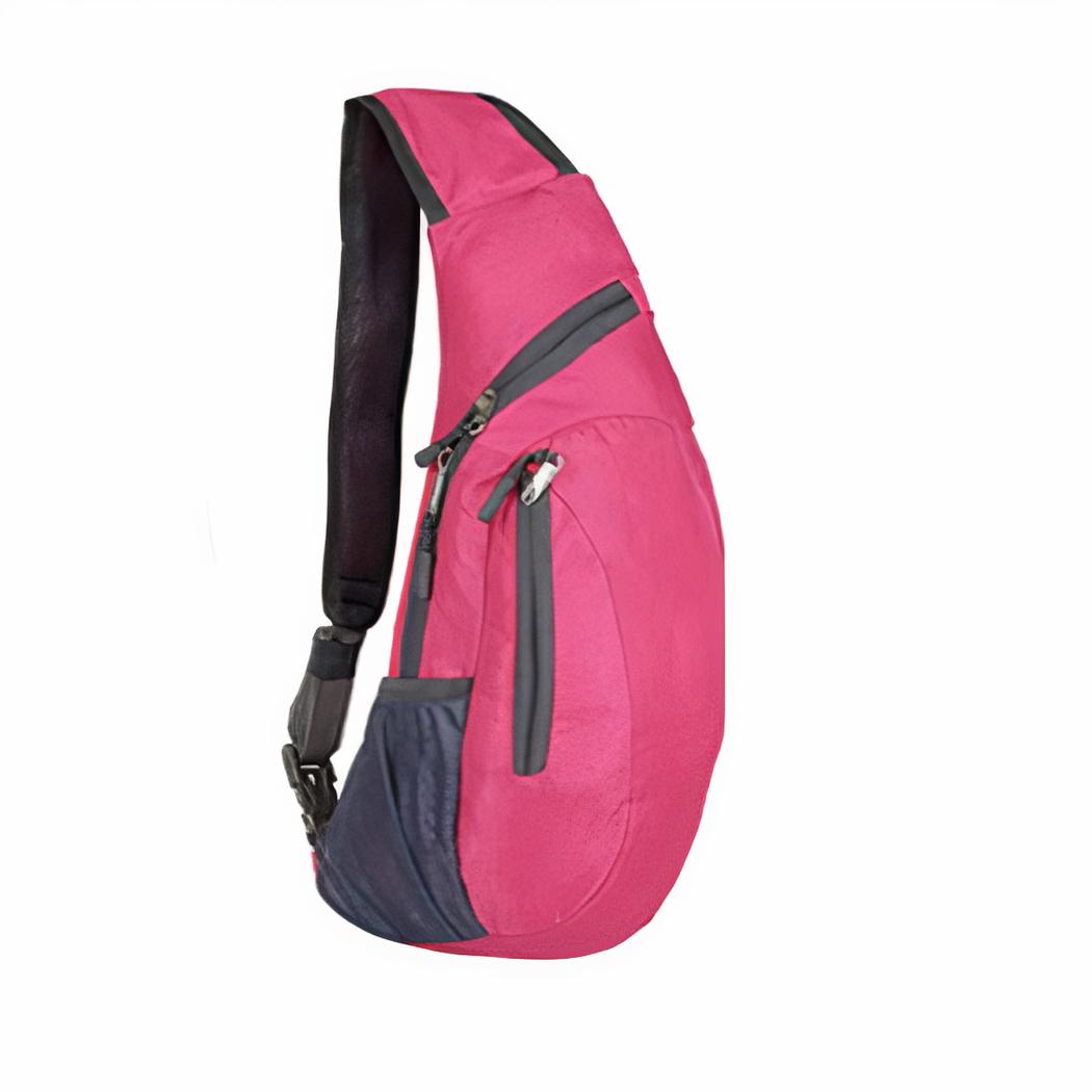 Una bandolera en varios colores, para llevar a la espalda o en la parte delantera. Impermeable y práctica, es perfecta para actividades deportivas al aire libre como el ciclismo. Puede deslizar una botella de agua en su bolsillo de malla del exterior.