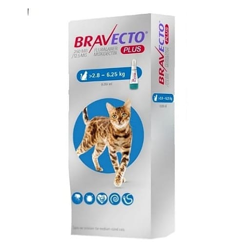 Bravecto Plus 250mg Spot On Cats para gatos es un tratamiento tópico seguro y eficaz contra pulgas y garrapatas que trata pulgas, garrapatas, nematodos gastrointestinales y previene el gusano del corazón en los gatos.