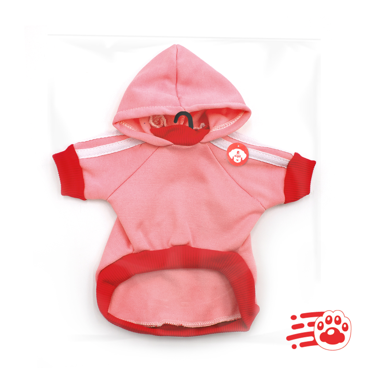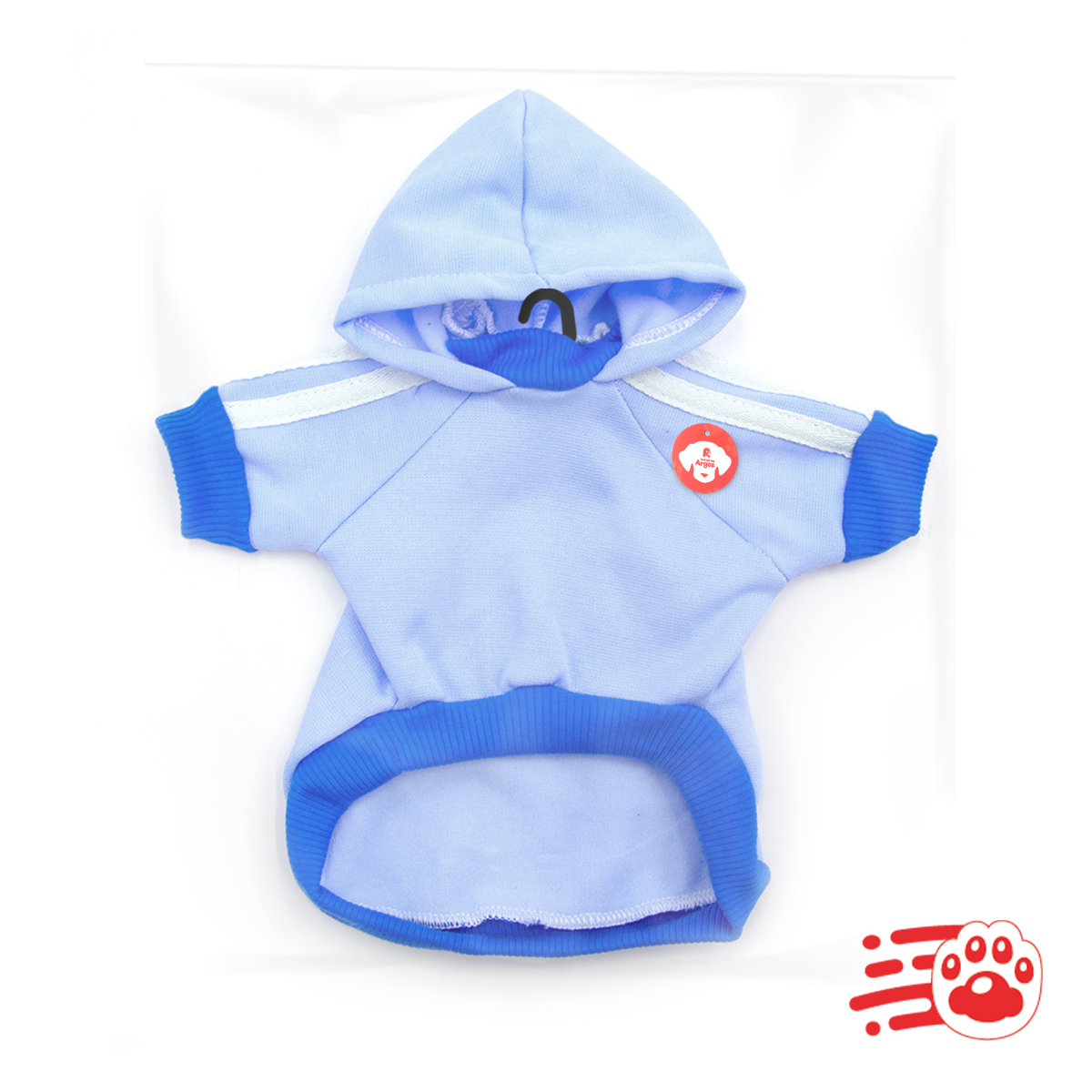 Buso con capota para mascotas, hermoso saco con huella estampada y franjas Adidas, y capota, para vestir y poner muy elegante a las mascotas. Les brinda abrigo y comodidad gracias a sus materiales suaves, además del beneficio de térmico, ya que cubre a las mascotas de los climas fríos y le brinda calor.