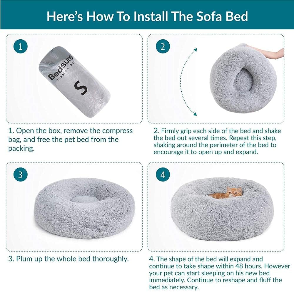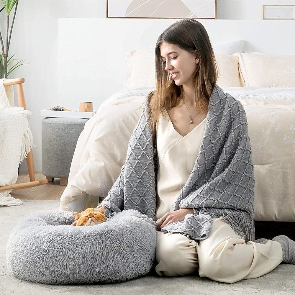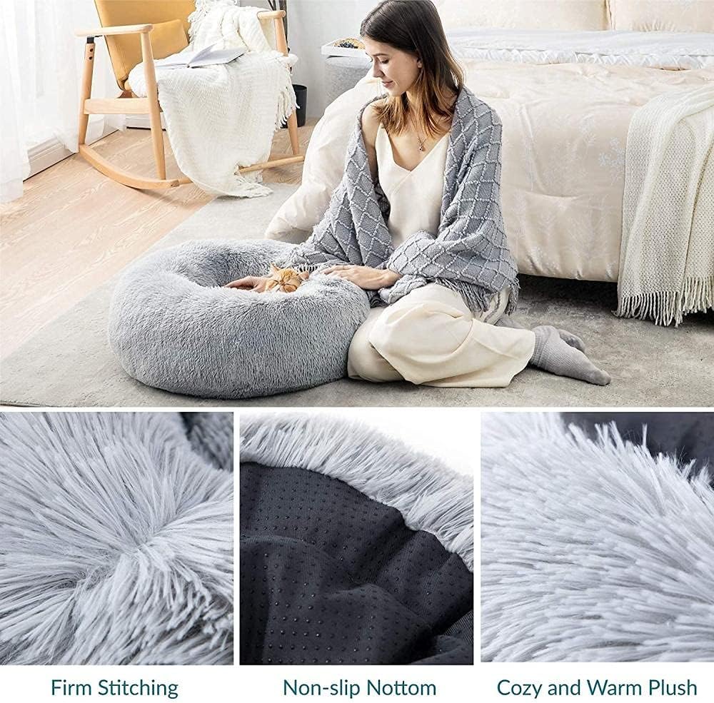 Cama antiestrés para gato y perro pequeño Bedsure de felpa lavable gris 50cm