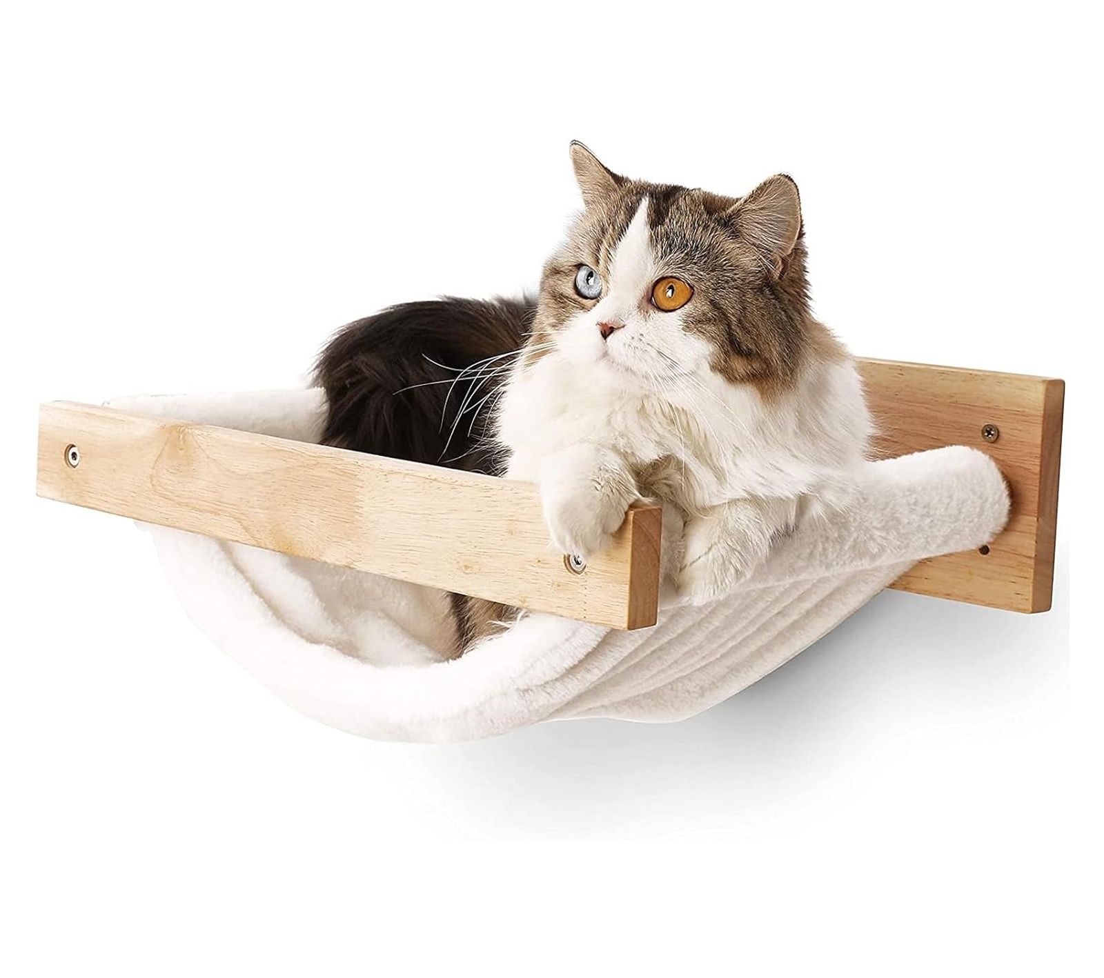 - Materiales seguros y duraderos: Fabricada con madera de caucho natural, esta hamaca es resistente, no tóxica y completamente segura para mascotas. La tela suave es lavable a máquina, sin olores ni decoloración, y se adapta al cuerpo de tu gato, brindándole un descanso cómodo como si lo abrazaras.