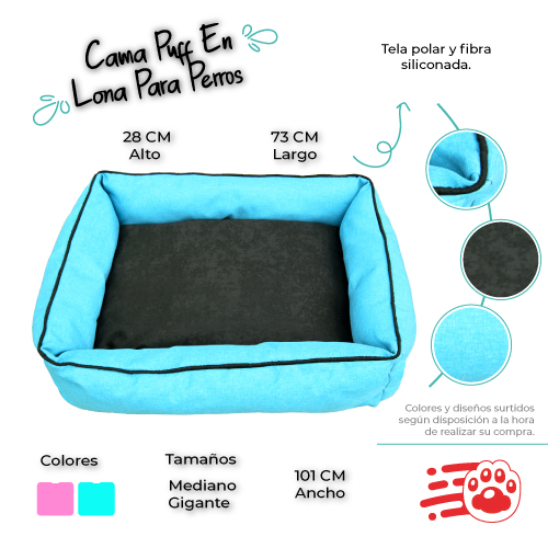 Cama Puff En Lona Para Perros Mayoristas PetOutlet tamaño extra grande, ideal para el descanso de las mascotas. Muy cómodo y acolchado ya que cuenta con almohada acolchada. la cama es sin duda un lugar fundamental para descansar, dormir y recobrar energía, de las mascotas.