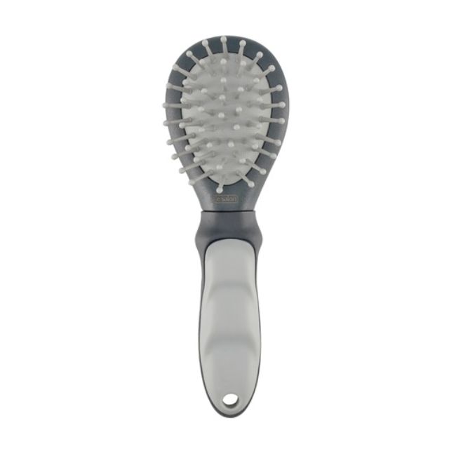 Las cerdas de masaje recogen el cabello suelto y la suciedad mientras masajean la piel y el pelo. Adecuado para el aseo general de la mayoría de razas.