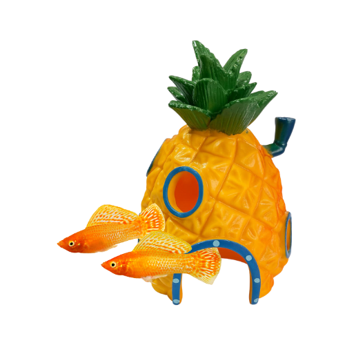 Casa de Bob Esponja, de la serie Bob Esponja. Decoración de plástico para acuario. Medidas: 8,5cm x 8cm x 11,5m.