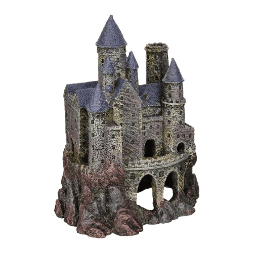 Añade un poco de encanto caprichoso y maravilla a tu pecera con la decoración del acuario del castillo del mago grande. Este adorno acuático de color completo cuenta con un gran castillo gris encaramado sobre una colina rocosa, con un techo en forma de cono, torres, arcos y detalles de piedra que dan una sensación realista de tiempos antiguos. Esta pieza es un gran centro de mesa o acento para tu tanque. Este castillo tiene varios baños a través de pasillos que le dan a sus peces la capacidad de nadar dentro y fuera promoviendo el movimiento y reduciendo el aburrimiento, además estas son grandes áreas estrechas en las que pueden esconderse o relajarse. Mira cómo tus peces se abalanzarán dentro y alrededor de su entorno, casi como magia.