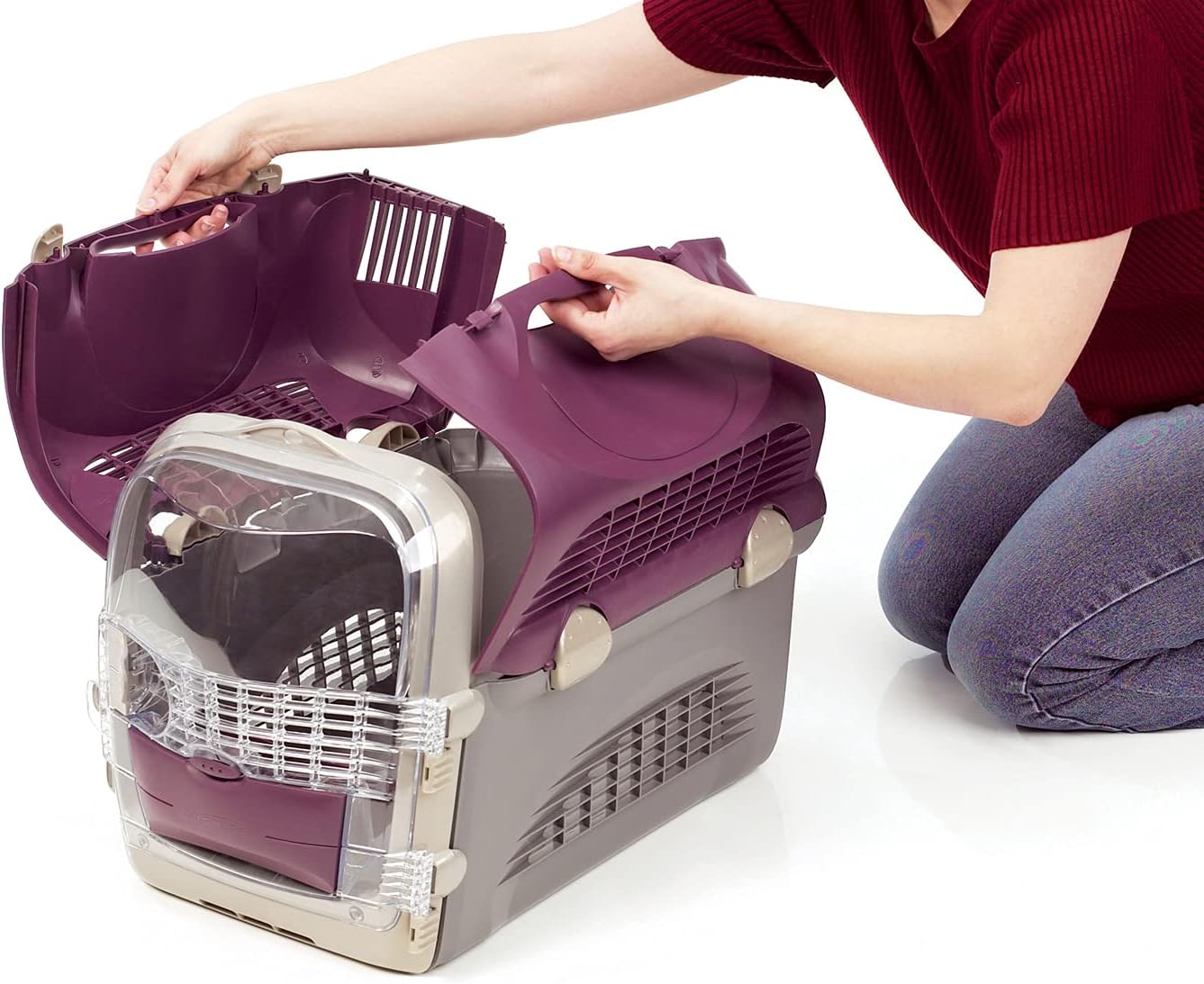 - Diseño accesible exclusivo de 360 ° para colocar a tu gato dentro con un mecanismo de bloqueo seguro usando una sola mano