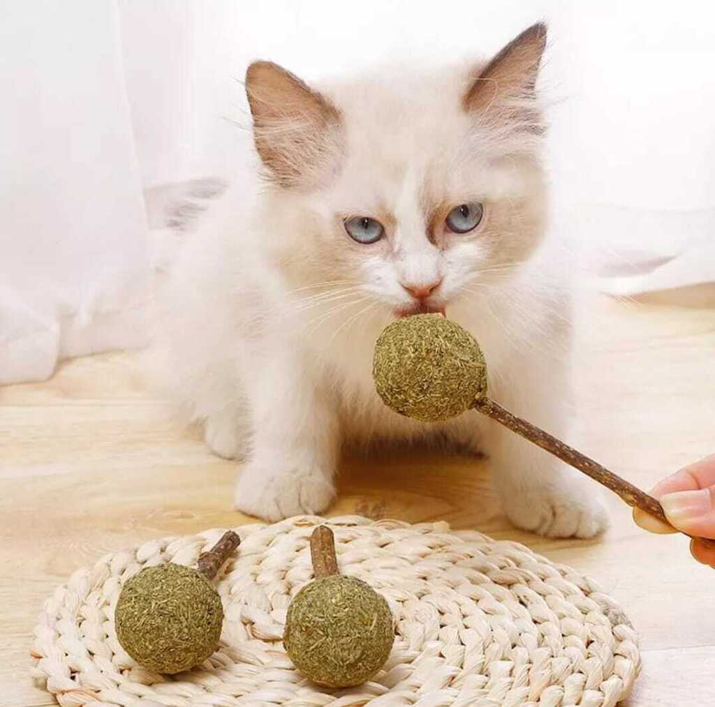 La hierba gatera conocida también como catnip, hierba de los gatos, menta de gatos, gatera o nébeda, es una planta originaria de Europa. Esta planta desprende un fuerte olor a menta que atrae a los gatos tornandolos juguetones. Saludable y sin calorías que promueve el ejercicio y hace que se mantengan activos. Además el palito de la misma, ayuda a la higiene dental de tu minino.