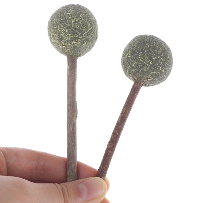 Llamativa paleta con hierba gatera prensada 100% natural. Es una forma novedosa de estimular y relajar a tu gato.