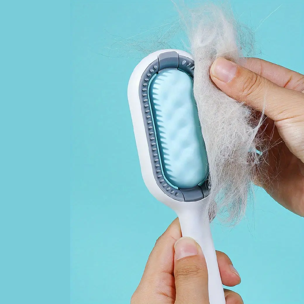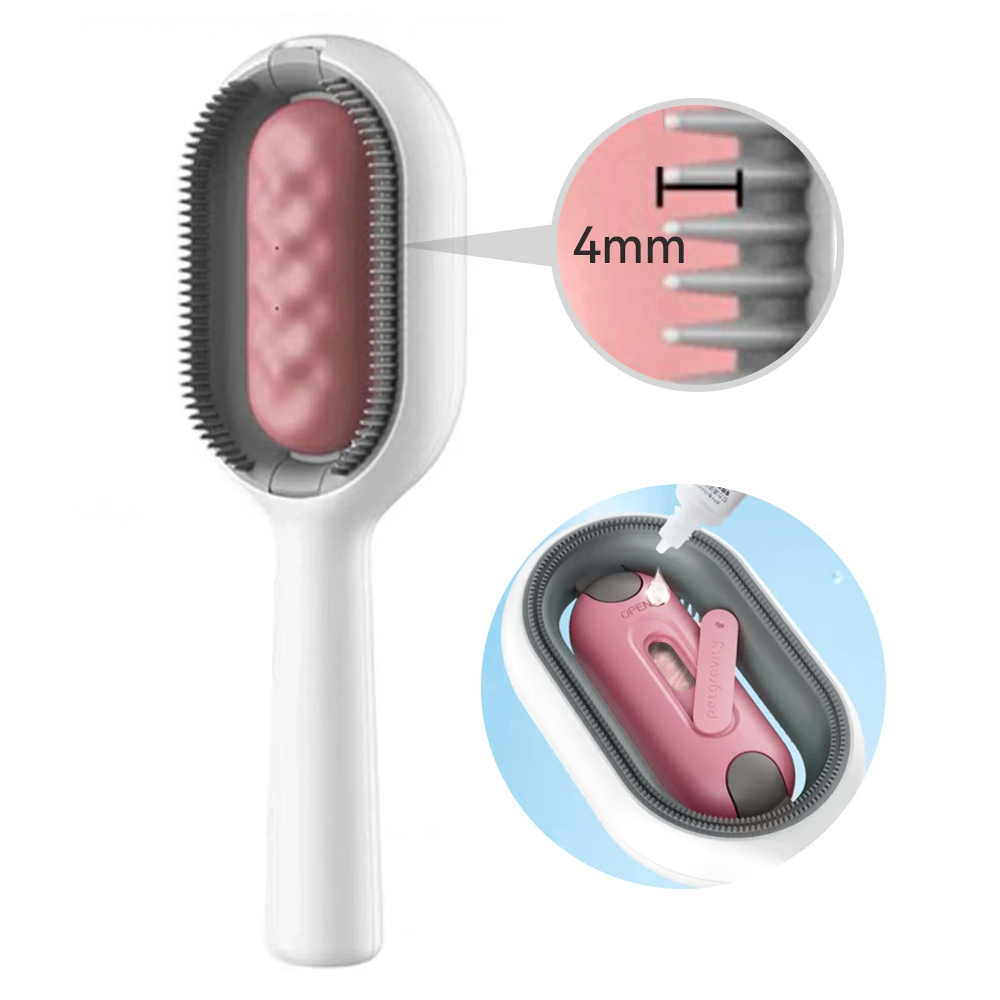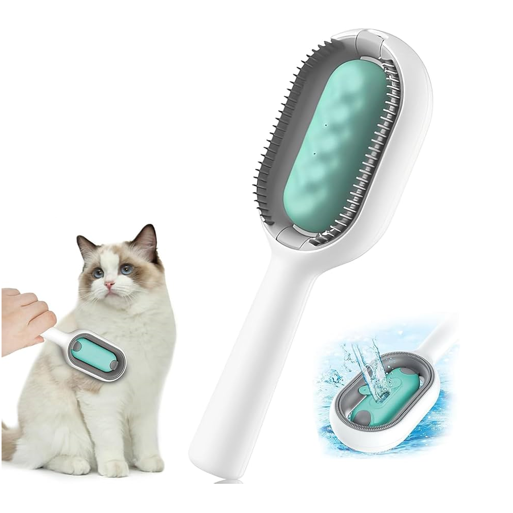 Cepillo de aseo para mascotas con tanque de agua, ideal para gatos y perros. Este producto multifuncional no solo peina y desenreda el pelo de tu mascota, sino que también permite limpiar su cuerpo.