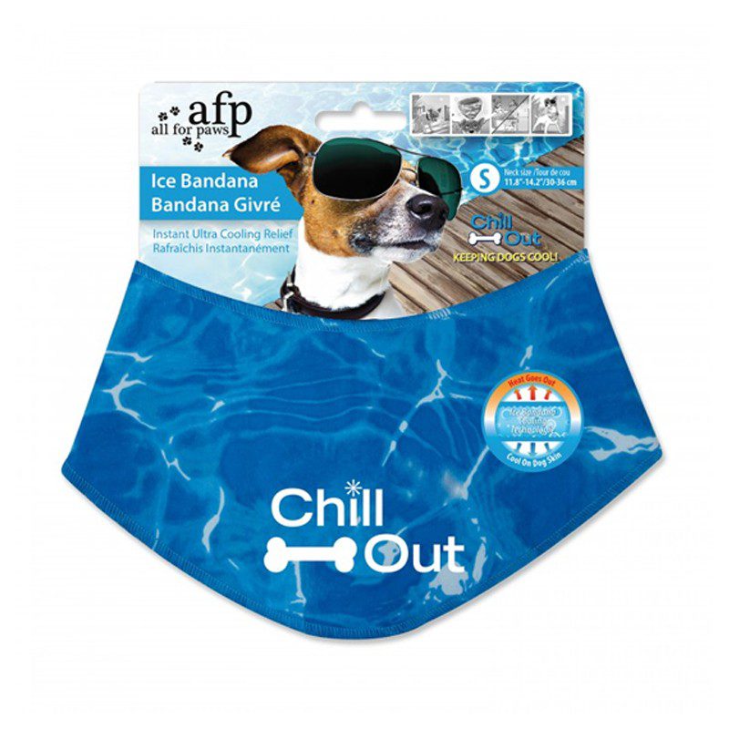 All for Paws Chill Out Ice Bandana es un accesorio para perros que se convierte en la solución ideal para combatir el riguroso calor del verano. Este pañuelo frío con tecnología de enfriamiento consigue extraer el calor de la piel del perro. Además, su diseño con ondas de agua azul le da un toque especial y refrescante. Cómodo y no tóxico. NO CONGELAR