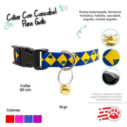 Collar Con Cascabel Para Gatos Mayorista PetOutlet estampado ideal para identificar a tu mascota y sacarla de paseo contiene un cascabel q entretiene a los gatos.