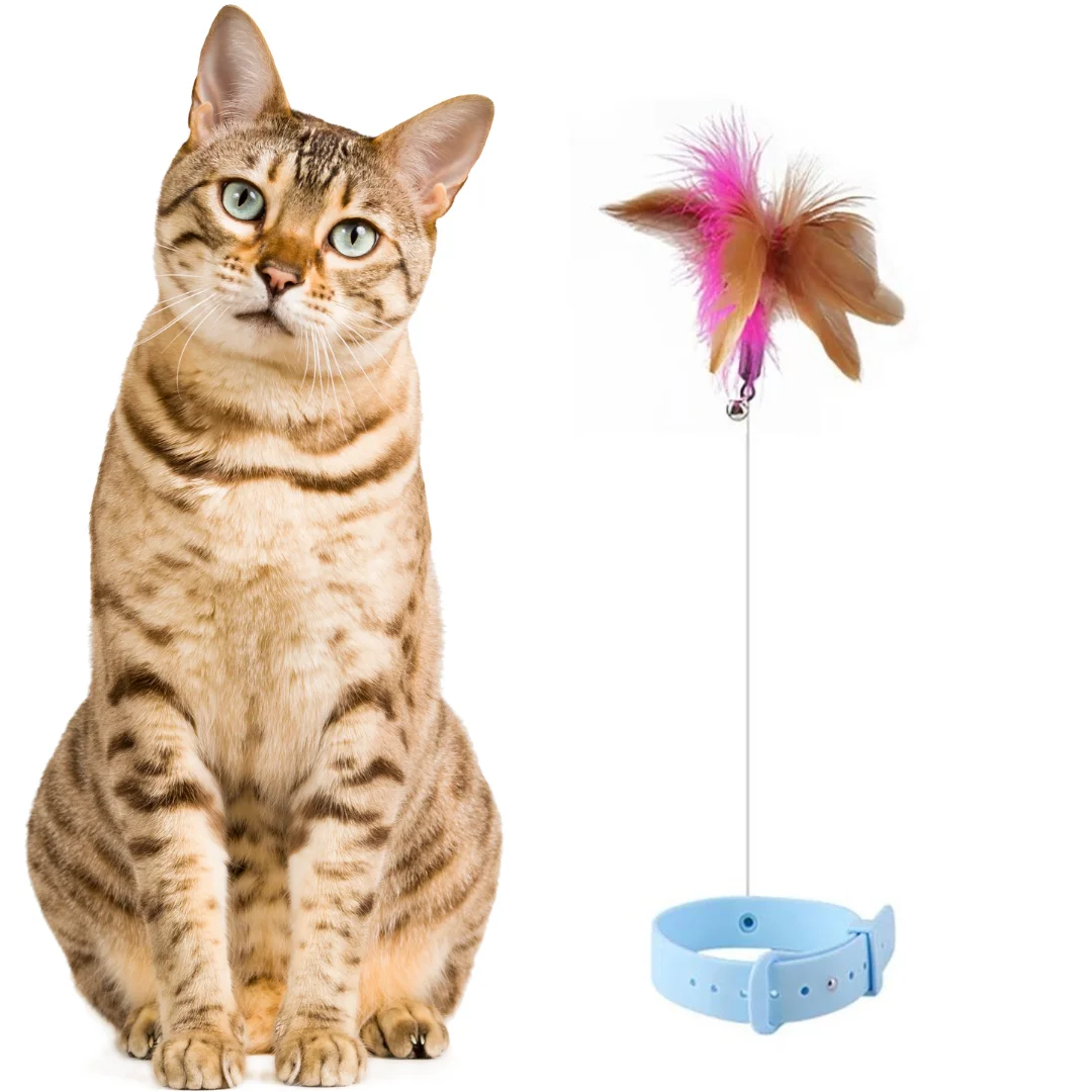Divertido collar con vara para gatos estimula su sentido de caza y ejercita a la mascota.