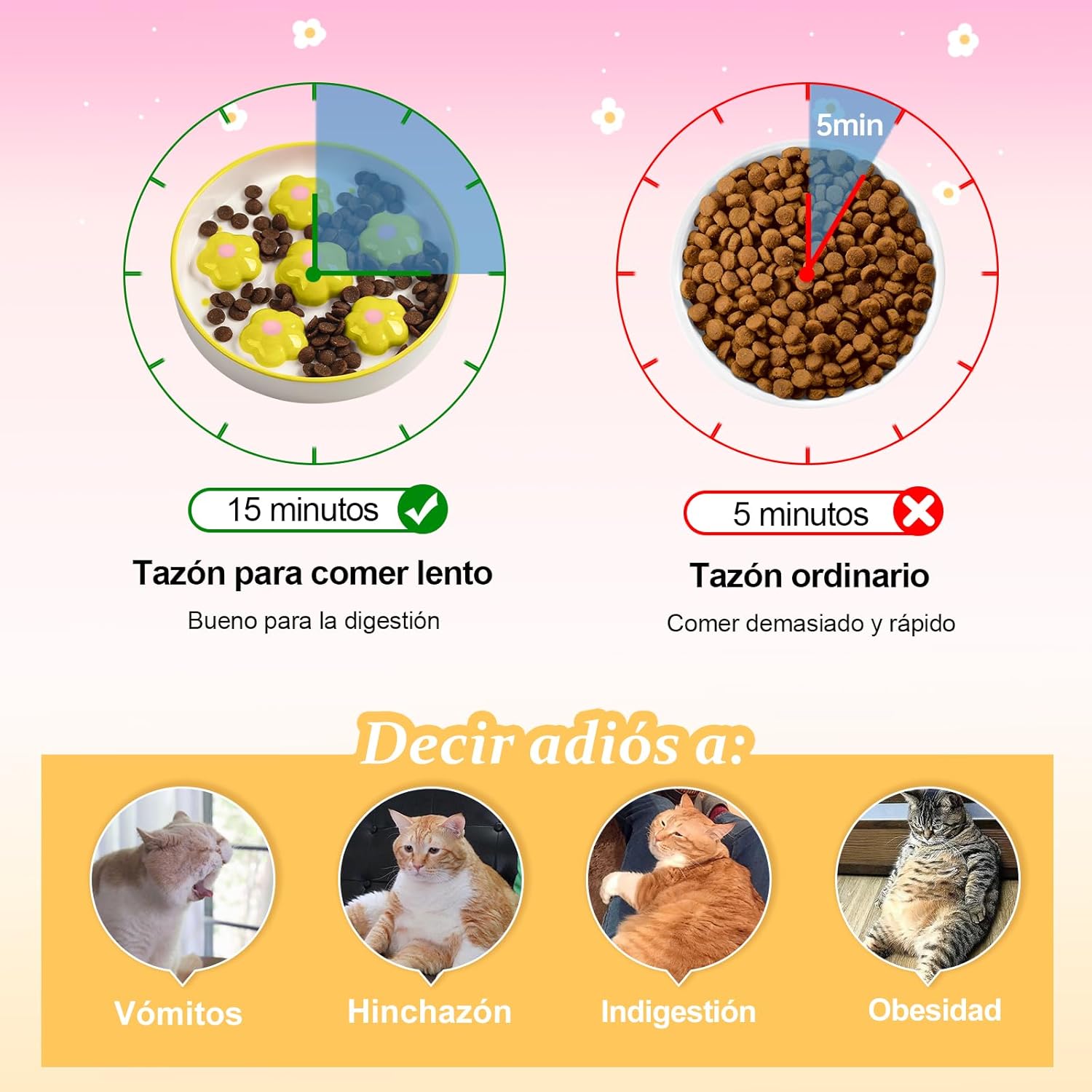 comedero antivoracidad para gatos: Transforma la hora de la comida en una experiencia más saludable y placentera para tu felino con este innovador comedero antivoracidad para gatos. Diseñado con obstáculos elevados en forma de flor, este cuenco ralentiza el ritmo al comer, ayudando a reducir problemas como hinchazón y vómitos, mientras fomenta buenos hábitos alimenticios en tu mascota.