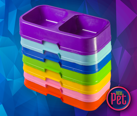 Comedero plástico Doble, colores varios sujetos a disponibilidad.