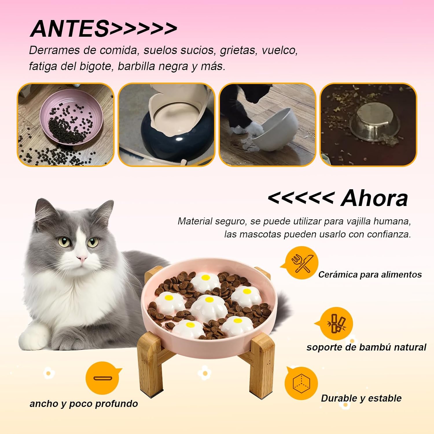 comedero gato antivoracidad elevado: Proporcione a su gato una experiencia de alimentación más saludable y cómoda con este comedero gato antivoracidad elevado. Diseñado con obstáculos en forma de plátano, este comedero ralentiza la ingesta de alimentos, ayudando a prevenir problemas como hinchazón, vómitos y el comportamiento de comer en exceso. Además, su diseño elevado promueve una postura adecuada, reduciendo el estrés en el cuello y las articulaciones de su mascota.