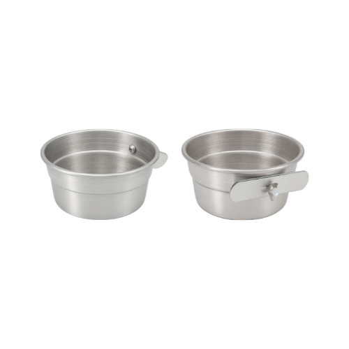 Comedero grande de aluminio para loros con mariposa para sujetar en jaula o barrotes.
