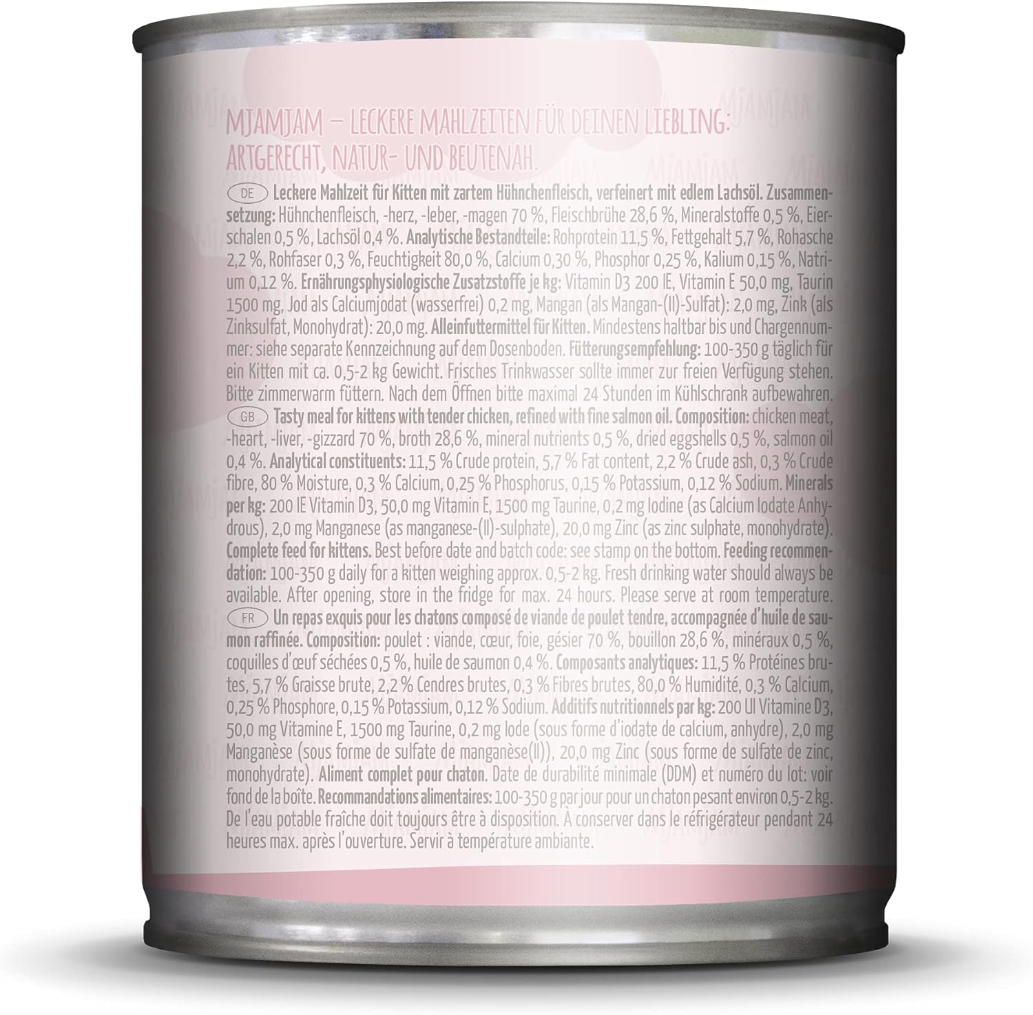 Elaborada mayoritariamente con ingredientes procedentes de granjas regionales, esta comida ha sido creada con amor y cuidado. Incluye componentes como carne, corazón, hígado y mollejas de pollo, cáscaras de huevo desecadas y aceite de salmón, lo que asegura una dieta equilibrada y natural. MjAMjAM, porque lo natural también puede ser sabroso.