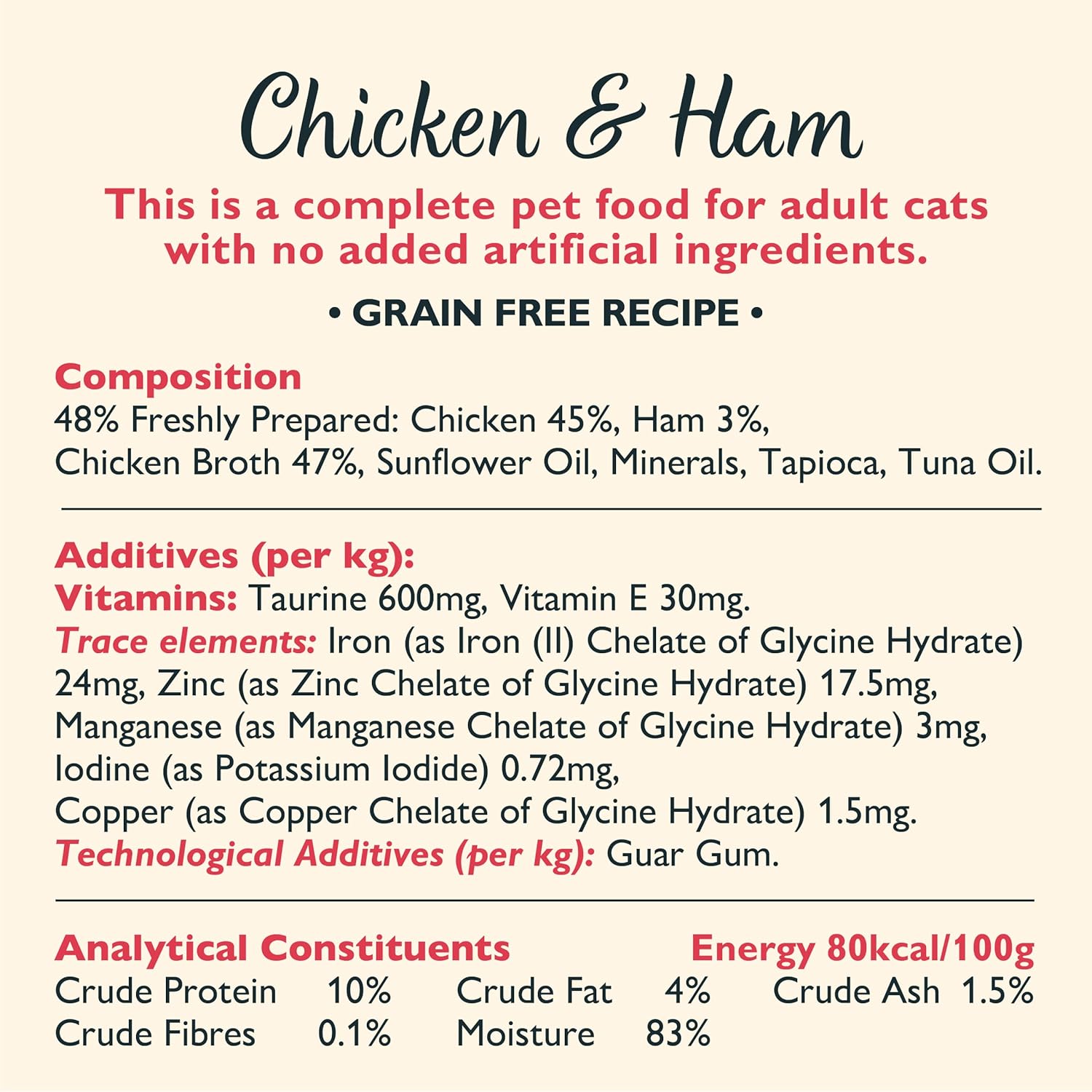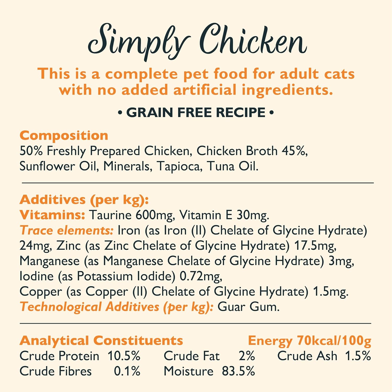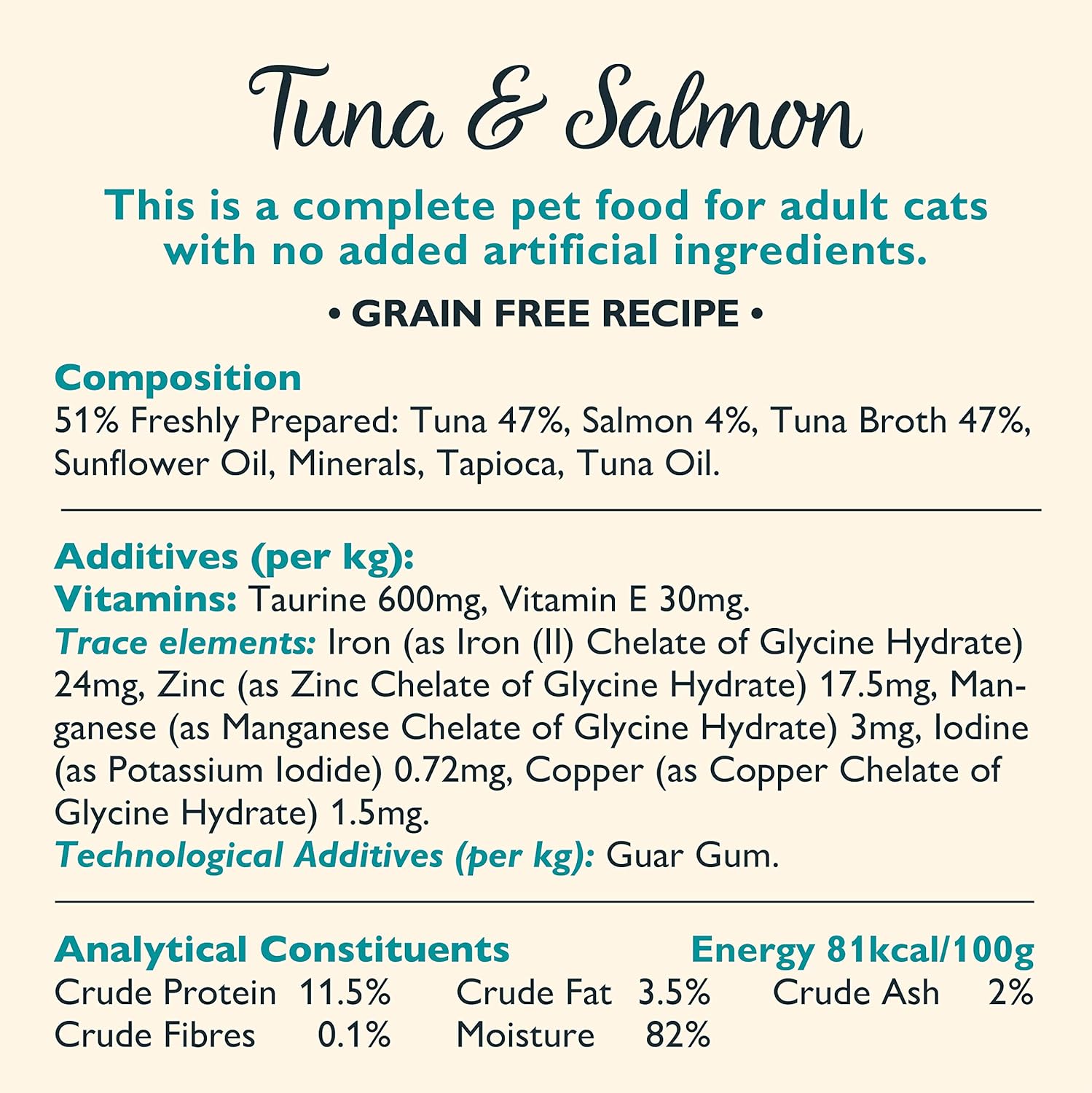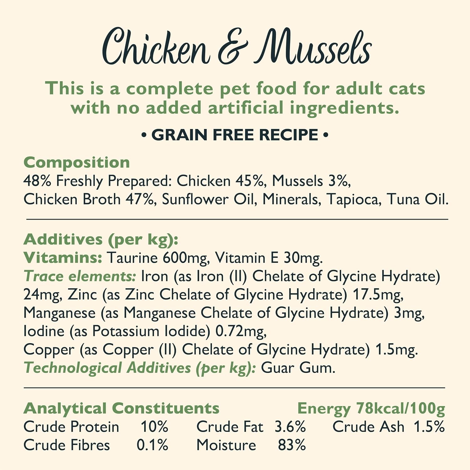 Nuestra receta, completamente natural y libre de cereales, garantiza una dieta equilibrada y saludable para tu gato. Además, está formulada sin azúcares añadidos, brindando una opción nutritiva sin comprometer el sabor. Dale a tu mascota el cuidado que merece con esta comida húmeda para gatos premium de calidad excepcional.