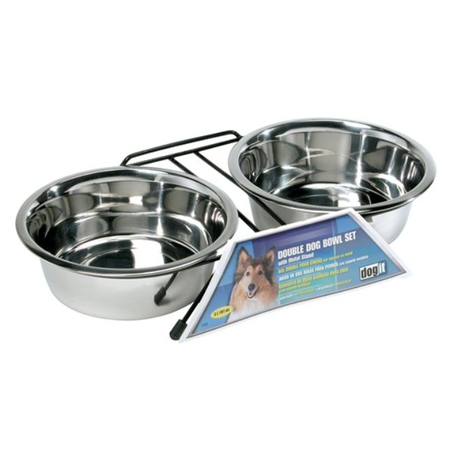 DOGIT COMEDERO ACERO INOXIDABLE DOBLE 2 X 400 ML hasta 2 Lts. El juego de comedor para perros doble de acero inoxidable Dogit (pequeño) incluye 2 tazones de acero inoxidable 400 Ml hasta 2 Lts. con soporte de metal negro.