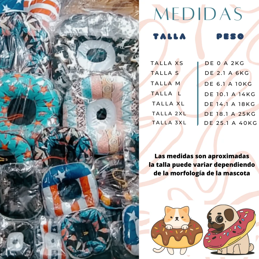 La dona isabelina sirve como un escudo protector para nuestras mascotas durante procedimientos quirúrgicos, tales como la esterilización u otras intervenciones. Esta herramienta contribuye a un proceso de cicatrización seguro y confortable para el animal. Además, la dona isabelina es versátil y se adapta a perros y gatos de todas las tallas.