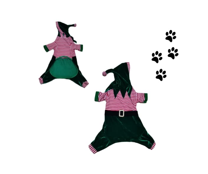 Este adorable traje de duende transformará a tu perro en el compañero perfecto para las festividades✨. Con su diseño festivo y detalles encantadores, tu mascota será la estrella de cualquier celebración navideña. Además, este traje también puede añadir un toque de diversión y alegría a tus fotos y reuniones familiares durante la temporada de fiestas.