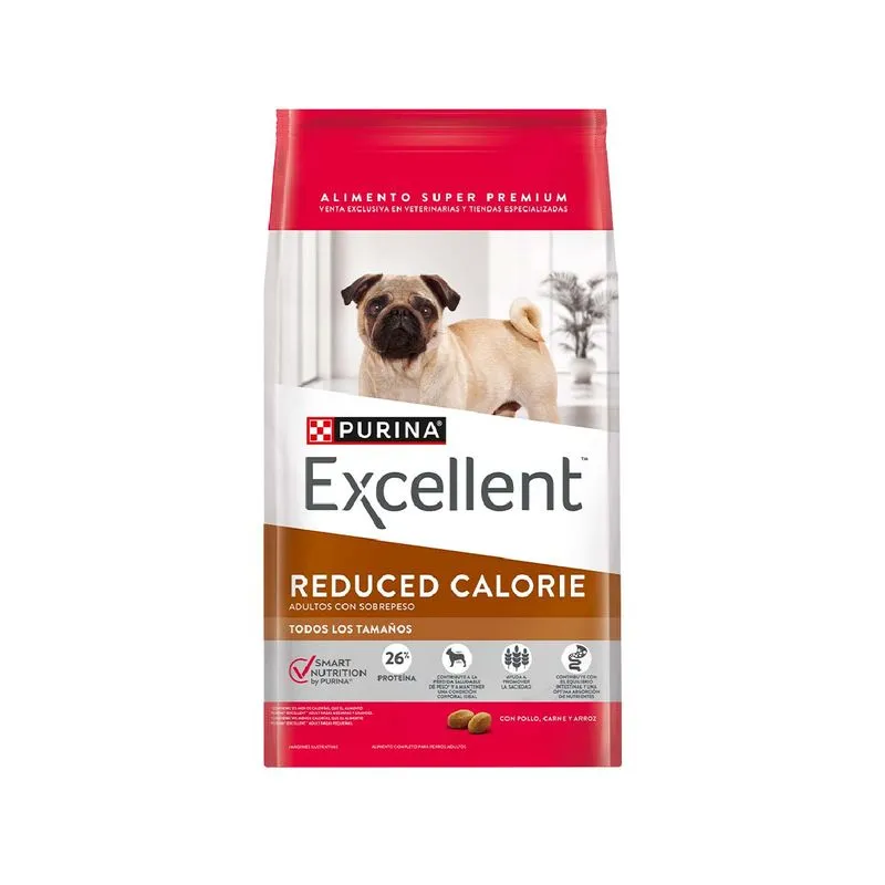 *Contiene 12% menos calorías que el alimento PURINA® EXCELLENT® Adulto Razas Medianas y Grandes. Contiene 14% menos calorías que el alimento PURINA® EXCELLENT® Adulto Razas Pequeñas.