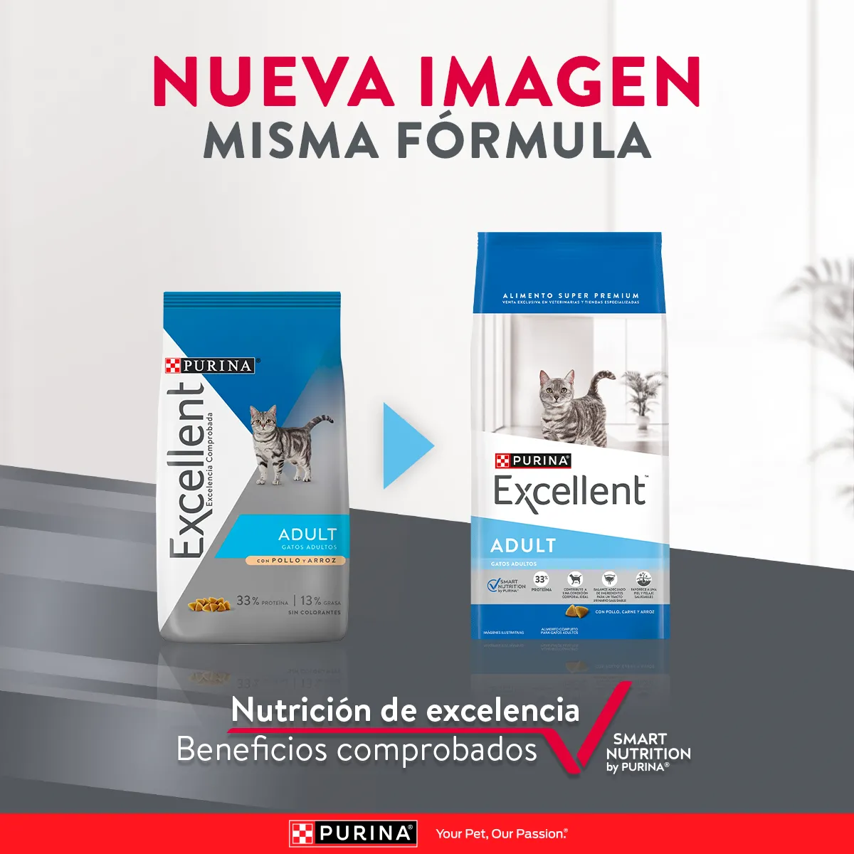Excellent Gato Adulto con Pollo y Arroz | 3 | 7.5 y 15 kg: Le ofrece una fórmula con fuentes de proteínas de elevada digestibilidad que ayudan a mantener músculos fuertes y sanos, además de una óptima combinación de ingredientes que ayuda a mantener un pH adecuado en la orina.